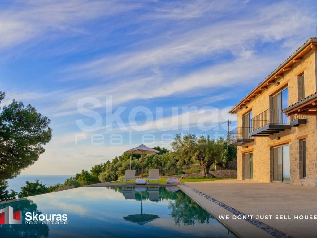Luxury Villa for Sale – Lefkada Set in a peaceful natural environment, just 300 meters from the sea, this luxurious stone-built villa of 360 sq.m. is situated on a private plot of 5,333 sq.m., offering unobstructed panoramic views of the Ionian Sea, the mountains, and the lush green landscape of Lefkada. The residence is developed across three levels: • Basement (88 sq.m.), currently used as a storage area, but offering great potential to be transformed into a wine cellar, fitness room, game room, or home cinema, depending on the needs of the new owner. • Ground and First Floor (272 sq.m.), hosting the main living areas, including four master bedrooms, four bathrooms, one WC, a spacious living room, and a modern kitchen fully equipped with high-quality electrical appliances. The property is a solid stone construction, built with exceptional attention to detail and timeless architectural elegance. It features underfloor heating and cooling systems (depending on the season) and a beautiful fireplace in the living room, ensuring comfort and warmth throughout the year. Additionally, the villa is equipped with water tanks with a total capacity of 170 cubic meters, providing complete autonomy. Outdoors, beyond the beautifully landscaped garden, there is a vineyard section and a herb garden, creating an authentic Mediterranean atmosphere. The property also offers a comfortable lounge area, an outdoor dining space, an open shower, and a large swimming pool of 75 sq.m., equipped with a heating system and a jet wave system, ideal for relaxation and wellness. Located just 31 km from the town of Lefkada, the villa perfectly combines tranquility and privacy with easy access to cosmopolitan beaches, traditional villages, and the island’s marinas. Lefkada has evolved into one of the most sophisticated and fast-developing destinations in the Ionian Sea, with continuous growth in tourism and real estate investment. Its easy access via a floating bridge, modern infrastructure, remarkable natural beauty, and authentic Greek character make Lefkada an ideal choice for a luxurious permanent or holiday residence, as well as a secure long-term investment. An exceptional opportunity for those seeking luxury, privacy, and refined aesthetics, combined with a unique natural environment and strong investment potential, in one of Greece’s most distinguished destinations. Skouras Real Estate #1 Greek Real Estate Agency in the Peloponnese 4 Offices: Nafplio | Kalamata | Corinth | Porto Heli 3,000+ Properties | 18+ Years of Experience | Support in 5 Languages Marketing & Website – European Property Awards 2020 Marketing Techniques & Development – EPPA 2022 & 2024 Call Center: +30 27520 29529 Mobile: +30 6970975306 Email: apip@skourasrealestate.gr Property Consultant: Anastasis Pipilos Discover more than 3,000 properties at: www.skourasrealestate.gr Note: The property information is based on data provided by the owners. Skouras Real Estate bears no responsibility for any inaccuracies. For property visits, presentation of ID or passport is required. Property locations on maps are approximate.