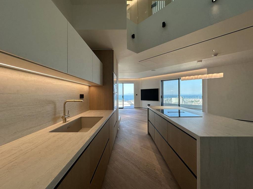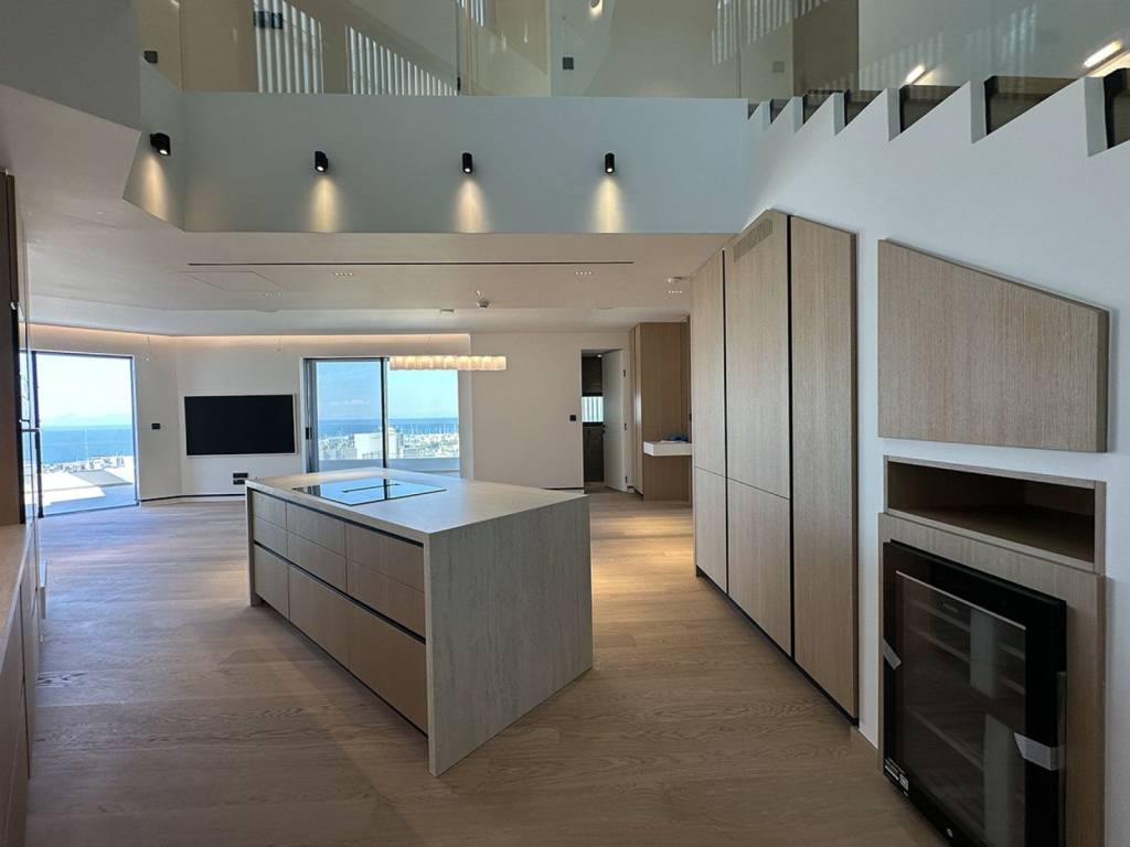 The residence spans 195 sqm and is developed across three levels, designed to combine contemporary architecture with comfort and functionality. The layout includes three en suite bedrooms, three bathrooms and one guest WC, along with a spacious living room and kitchen. The property is particularly bright and dual aspect, with large openings that enhance natural light and create a seamless connection between indoor and outdoor spaces. A key highlight of the residence is the private rooftop swimming pool, complemented by generous terraces that offer unobstructed sea views, creating an exceptional setting for relaxation and entertaining. The property features advanced smart home technology, including automated control of heating, lighting and climate systems, along with fan coil units and air conditioning throughout. Additional amenities include a private internal elevator, security entrance door and two underground enclosed parking spaces. Built in 2025 with energy class A+, this residence represents a unique opportunity for high end living in one of the most sought after coastal locations of Athens.