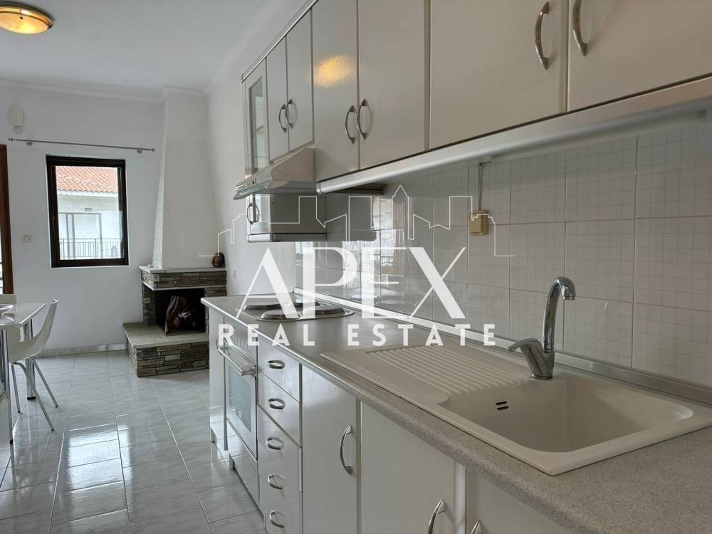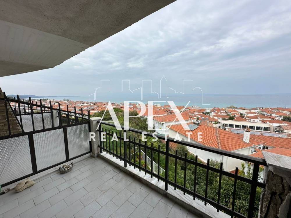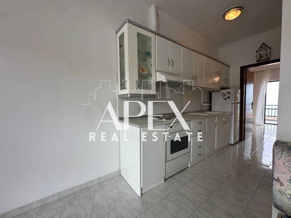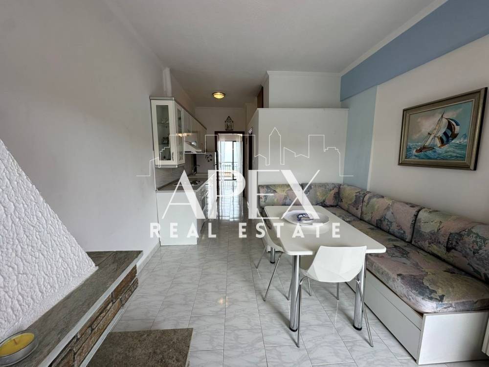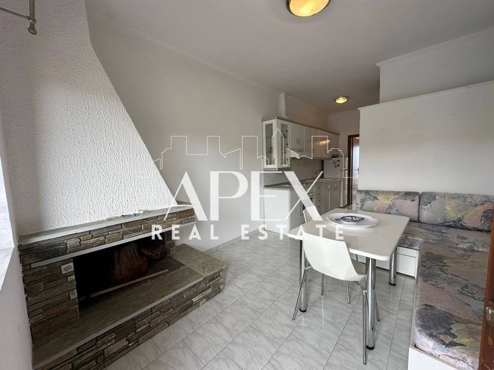With unlimited sea views, luxuriously constructed apartment of 48sq.m. net, for sale on the first floor, in Polychrono, Halkidiki. It consists of a spacious bedroom, a bright open plan kitchen with living room and a bathroom. It has a fireplace, large terrace, furniture, electrical appliances and aluminum frames. It is located in an ideal location about 400m. from the beach, close to beach bars, restaurants, school and the market.