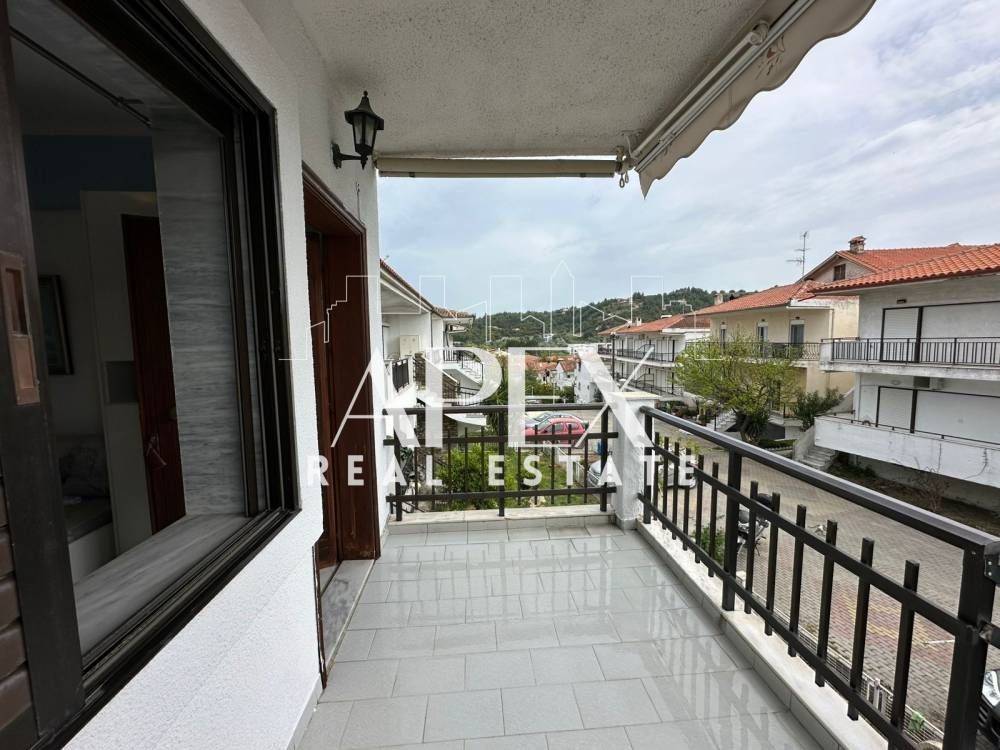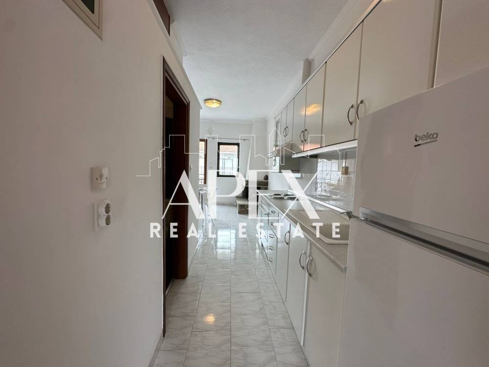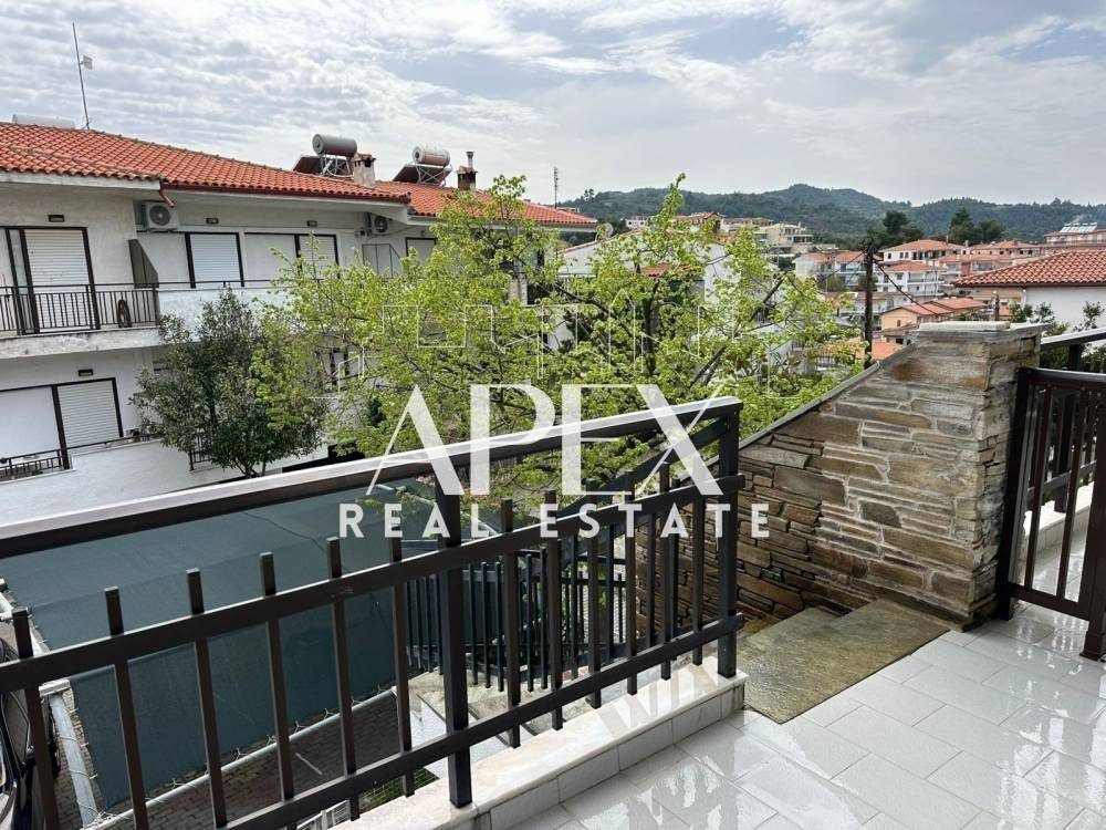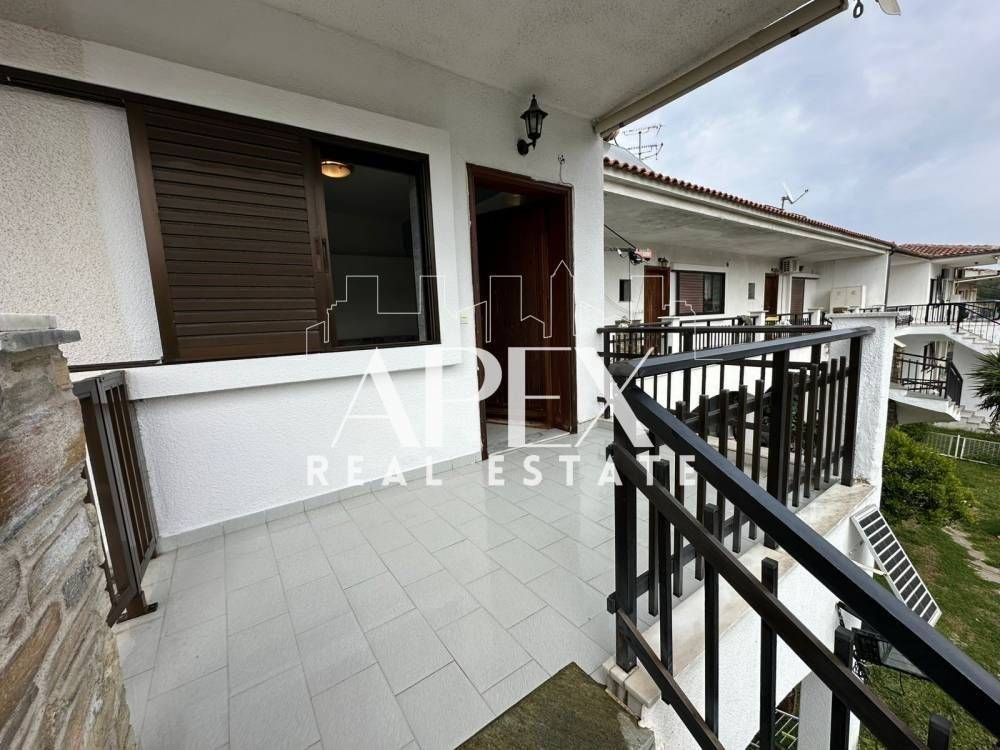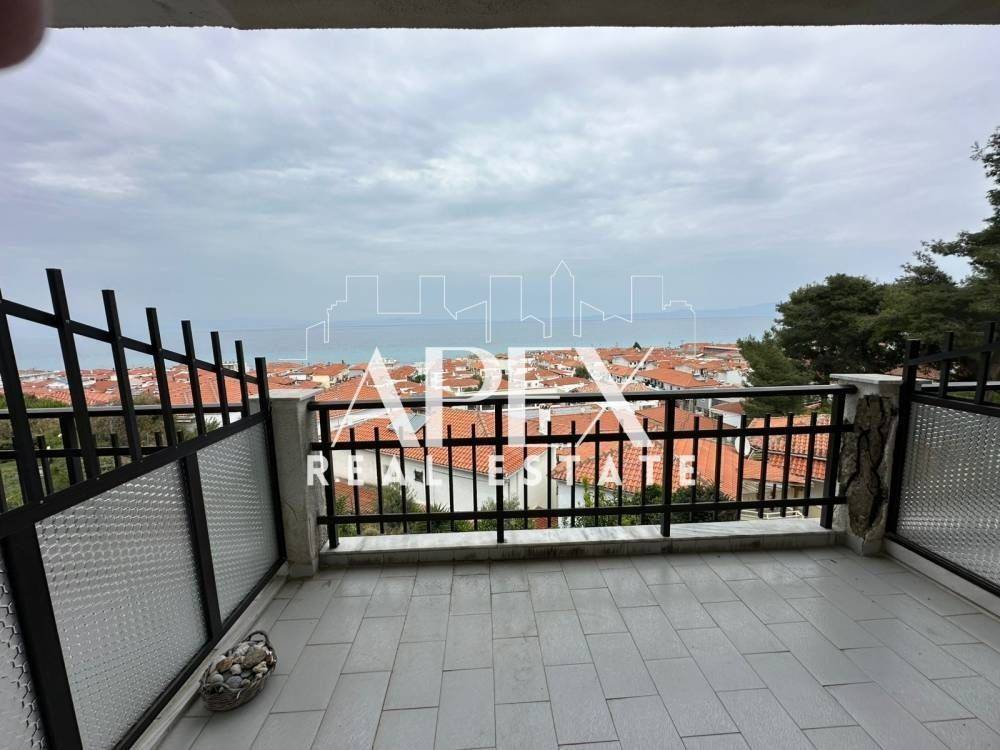 With unlimited sea views, luxuriously constructed apartment of 48sq.m. net, for sale on the first floor, in Polychrono, Halkidiki. It consists of a spacious bedroom, a bright open plan kitchen with living room and a bathroom. It has a fireplace, large terrace, furniture, electrical appliances and aluminum frames. It is located in an ideal location about 400m. from the beach, close to beach bars, restaurants, school and the market.