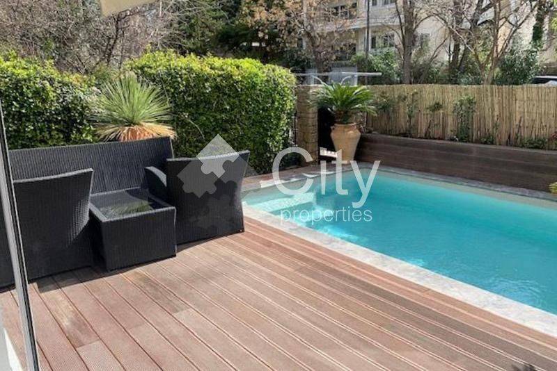 The private garden and swimming pool stand out in the outdoor area, while there is also a closed parking space suitable for a medium-sized car. The residence offers openness and beautiful views, combining tranquility with direct access to the center of Kifissia.