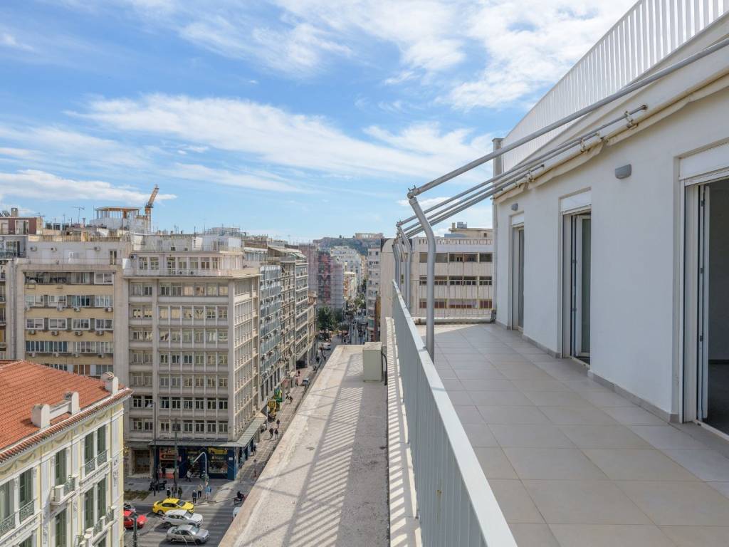Ανακαινισμένα γραφεία στον τελευταίο όροφο, στην πλατεία Ομονοίας. Το ακίνητο έχει επιφάνεια 157τ.μ., βρίσκεται στον 8ο όροφο του κτηρίου, διαθέτει βεράντα με θέα και είναι πλήρως λειτουργικό και έτοιμο προς χρήση. Υπάρχει επίσης δυνατότητα αγοράς του διπλανού γραφείου, επιφάνειας 135τ.μ., το οποίο καταλαμβάνει τον υπόλοιπο τελευταίο όροφο, έχει θέα προς την πλατεία και χρήζει ανακαίνισης. Ένα ακίνητο έτοιμο για άμεση χρήση, με άμεση πρόσβαση σε όλα τα μέσα μαζικής μεταφοράς, σε έναν από τους πιο κεντρικούς άξονες της Αθήνας.