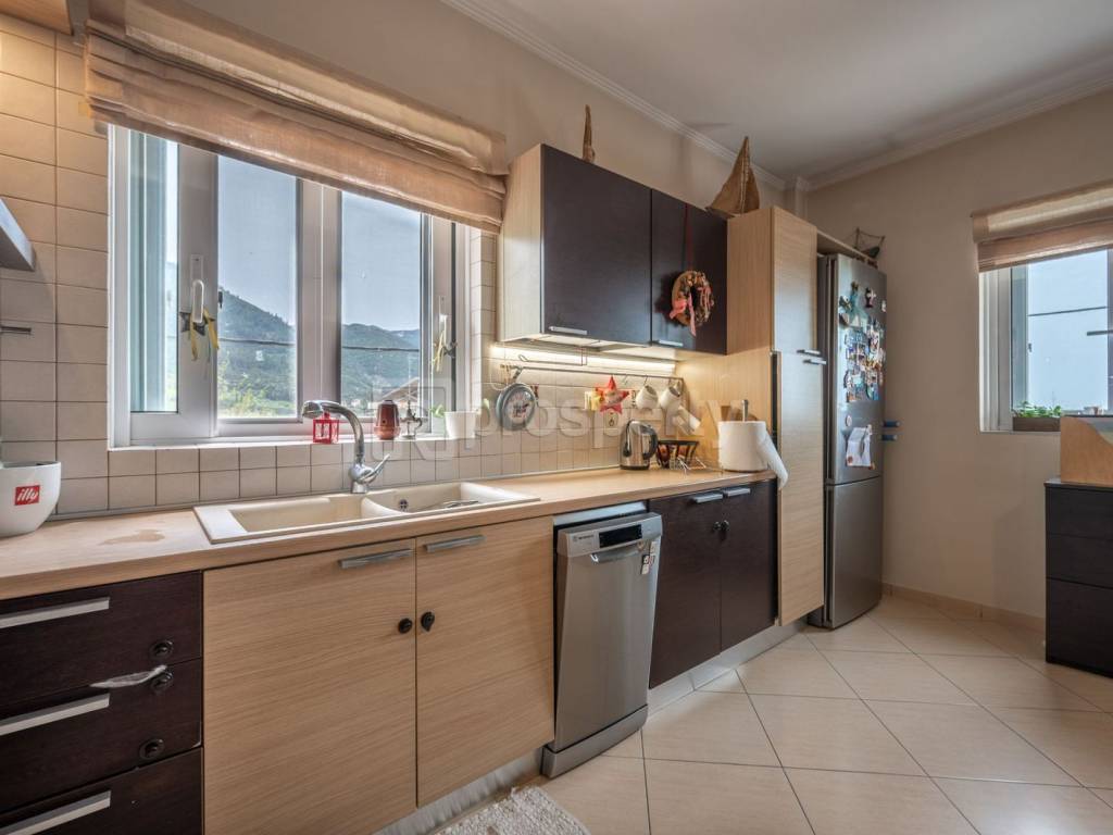 Bright first-floor apartment in the Perivola area of Achaia, with a total surface of 131 sq.m., located in a quiet part of Souli and offering unobstructed panoramic views over the city of Patras. Built in 2005, the property is an excellent choice for both private residence and investment, combining functionality, comfort, and strong return potential. The main apartment covers 89 sq.m. and features two spacious bedrooms, an open-plan living and dining area with a fireplace, a functional kitchen, a bathroom, and a large veranda of approximately 25 sq.m. with panoramic views. It is dual-aspect and filled with natural light, equipped with aluminum window frames, double glazing, insect screens, and a security door, while the flooring consists of tiles and the energy efficiency rating is class B. The property also includes autonomous oil heating, four air conditioning units, and a 160-liter solar water heater, ensuring year-round comfort with low shared expenses. The 42 sq.m. basement includes a closed garage and storage space, with pre-installed connections for a kitchen and bathroom, offering the potential to be converted into a fully independent apartment. This feature significantly enhances the property’s value, making it ideal for guest accommodation or rental use. The apartment is front-facing, with a west-southwest orientation and easy access via asphalt road, while it is located just 7 km from the sea. It includes a parking space and is part of a two-story building, offering privacy and tranquility. The property is immediately available, with a price of €177,000 and a price per square meter of €1,988.76, representing a complete and high-quality opportunity in the wider Patras area ☎️ 210 6812500