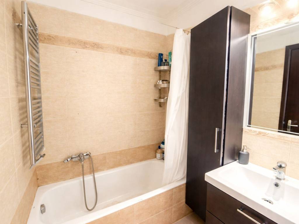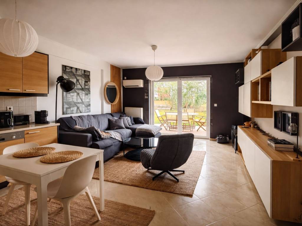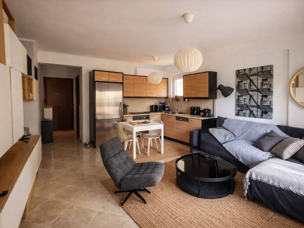A beautiful furnished ground-floor apartment of 51.16 sq.m. is available for rent in Gerakas, in a modern two-storey building with 11 apartments, near the National Bank data processing center. The property consists of an open-plan living room and kitchen, one comfortable bedroom, and a bathroom with a bathtub. It has a north-facing orientation and overlooks a large, quiet garden, offering a sense of privacy and coolness. The apartment features tiled flooring in the main areas and wooden flooring in the bedroom, aluminum window frames, a security door, and an alarm system. It also includes autonomous oil heating, air conditioning in the living room, and a solar water heater. The property comes with two underground parking spaces and a 5 sq.m. storage room. It is located in a quiet area with easy access and is an ideal choice for singles or couples seeking a comfortable and practical home.