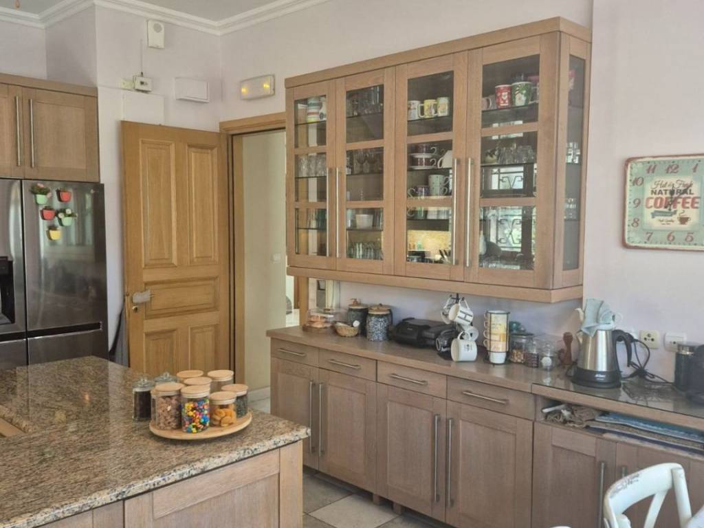 Luxury detached house of 500 sq.m., arranged over 3 levels, set on a 640 sq.m. amphitheatrical plot in the Diony–Pikermi area, built in 2011, consisting of: **GROUND FLOOR:** The main entrance welcomes us into an open and bright space consisting of two living rooms (one with a fireplace), a dining area for 12 people, a WC serving the ground-floor area, and a kitchen which also has a separate entrance. All areas benefit from abundant natural light, large windows, a spacious balcony, and a large veranda with access to a beautifully maintained garden and an unobstructed front view. **FIRST FLOOR:** A large and comfortable internal wooden staircase leads us to the upper floor, where, before reaching the bedrooms, we find a small sitting area. We then encounter the 4 bedrooms, including a master bedroom (one with a jacuzzi and shower). All bedrooms have their own balcony and are very bright, as well as a laundry room with access to a balcony. **BASEMENT:** The basement includes an independent apartment with one bedroom, kitchen, and living room with fireplace, featuring two separate entrances from the main house. It also includes two storage rooms of approximately 40 sq.m., parking space for 2 vehicles, a boiler room, and a boiler with 300-liter capacity. The residence offers the following features: an elevator connecting the basement to the upper floor, central underfloor heating, cooling–heating system (cooling on the ground floor and air-conditioning units in the bedrooms), with independent control per floor, as well as an alarm system with per-floor deactivation, satellite systems and Wi-Fi, wooden frames and doors with thermal-insulated glass windows, a reinforced security main entrance door, certified furniture from renowned brands whose authenticity can be verified, crystal lighting fixtures from a well-known designer house, and flooring combining parquet and marble. The entire layout has been designed with great care and study, ensuring that all elements are placed in their appropriate positions and harmoniously integrated, resulting in an excellent outcome that is immediately evident upon entering the residence. **PRICE with furniture: €1,350,000** **Without furniture: €1,250,000**