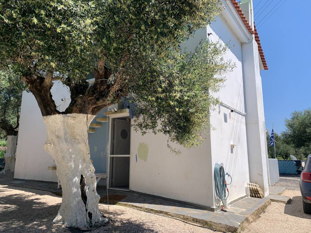 A lovingly maintained and recently modernised two-storey detached house is for sale in a quiet location in Kamaria near Finikounda – ideal for owner-occupation or as a holiday home. Key details: • Living area: approx. 100 m² • Year of construction: 2008 • 3 bedrooms • Dining room/kitchen • Lounge area with sea views • 2 storage rooms • Bathrooms: 2 • Distance to the sea: approx. 1 km • Interior condition: renovated • Exterior condition: currently being professionally renovated, plastered/painted. Features & Highlights: • Low-salt pool with counter-current system (fully automatic) • Heat pump & pool cover – suitable for year-round use • Solar-powered outdoor shower • New photovoltaic system (2026) with feed-in permit & storage battery (self-sufficient in the event of a power cut) • New solar hot water boiler • Programmable pellet stove • Water storage tank/reservoir (approx. 4,000 litres) • New aluminium windows & sliding balcony doors with insect screens • New front door • New air conditioning • High-voltage power supply Outdoor area: The approximately 800 m² plot is lovingly landscaped and offers: • 10 large, mature olive trees • 11 fruit trees • 2 garden sheds on concrete foundations Asking price: €395,000 For further information or to arrange a viewing, please do not hesitate to contact us on ***/*******.