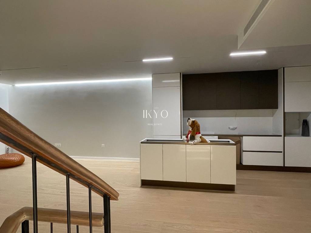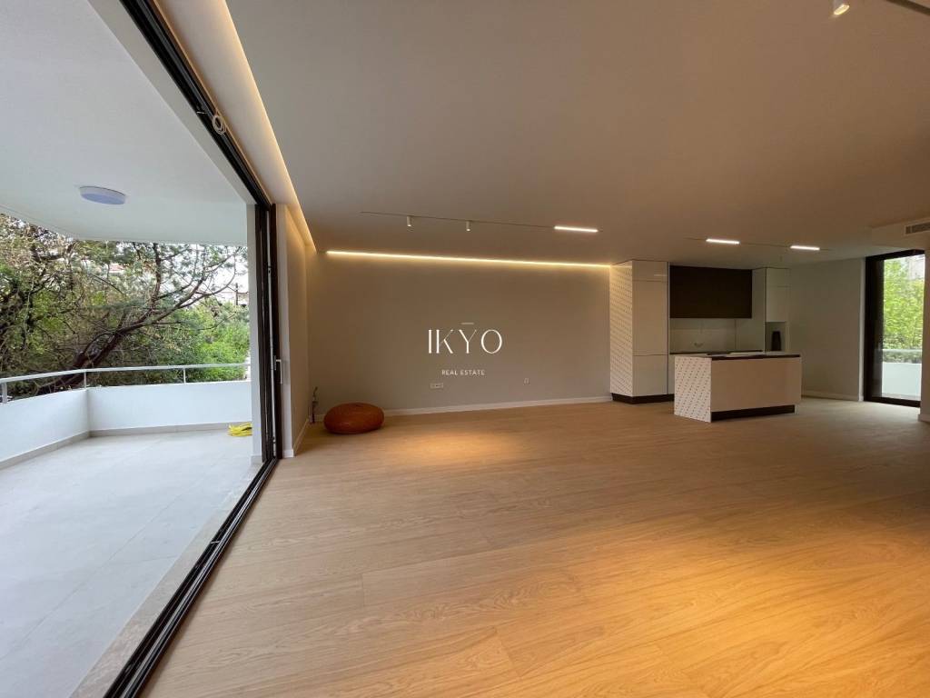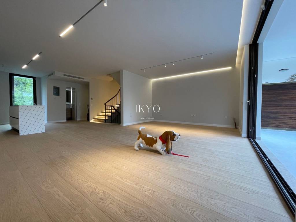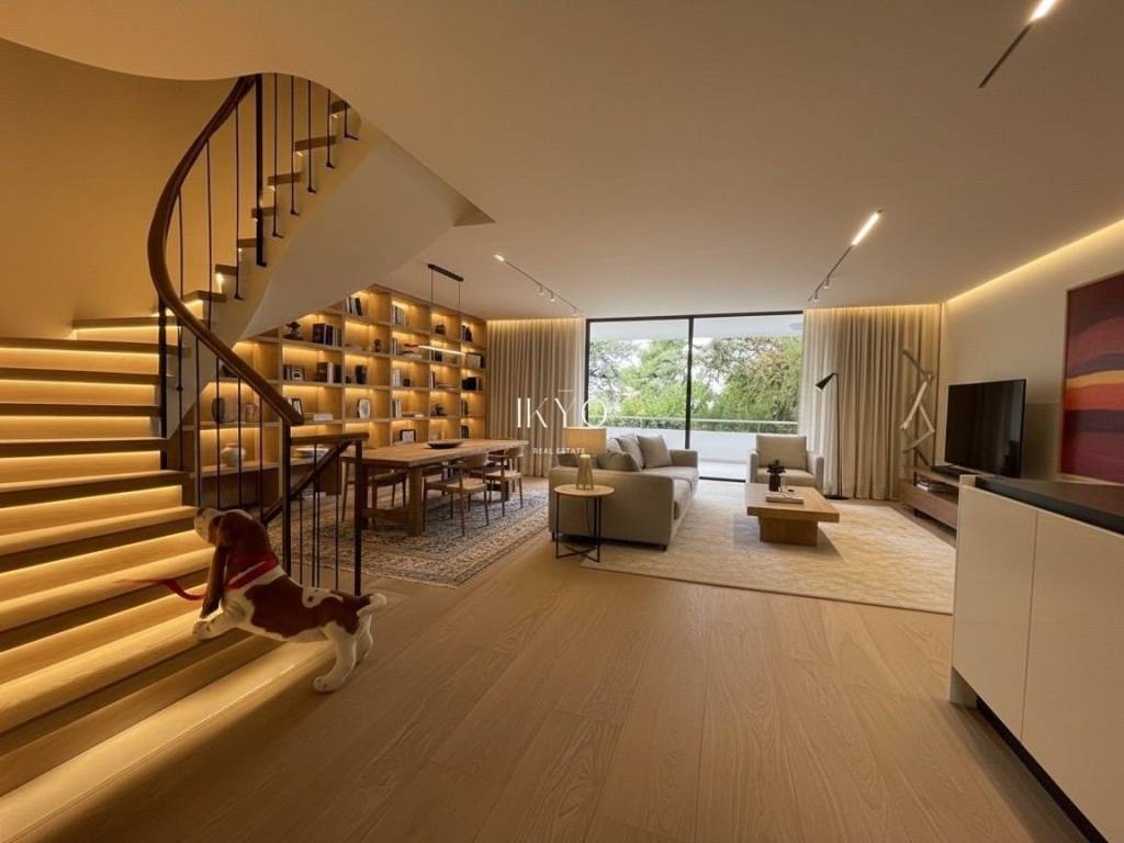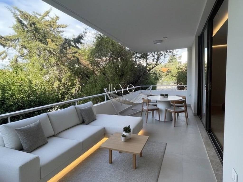 VOULA Renovated Duplex 160 sq.m. 1st level: Bright living room, open-plan kitchen with integrated laundry area, guest WC, and large front and rear verandas (approximately 20 sq.m. + 7 sq.m.). 2nd level: 3 bedrooms (one is ensuite with its own bathroom), plus 1 additional bathroom shared by the other two bedrooms. All bedrooms have balconies. Features: Autonomous natural gas heating, air conditioning for cooling and heating, high-quality wooden floors, fireplace pre-installation. Includes one parking space and a 7.5 sq.m. storage room. Residents also have access to a recreation area on the ground floor. Location: In the Dikigorika area of Voula, about 1 km from the beach. A quiet and green neighborhood with easy access to beaches, shops, schools, and public transport; just a few minutes from Glyfada and the Elliniko development.
