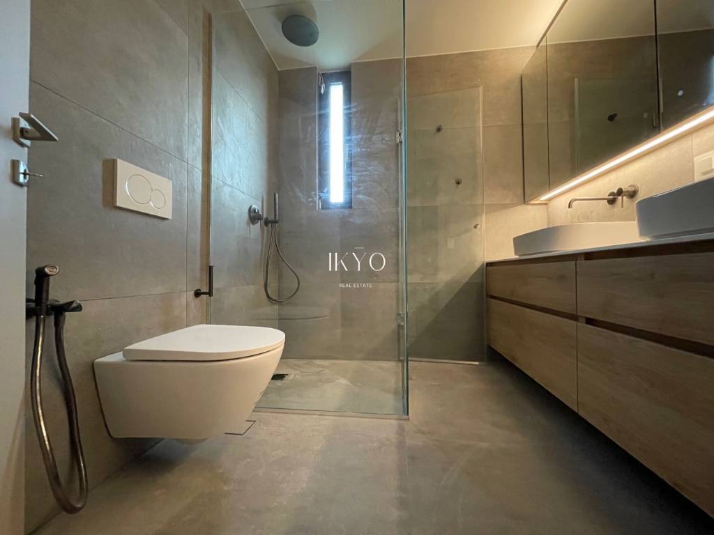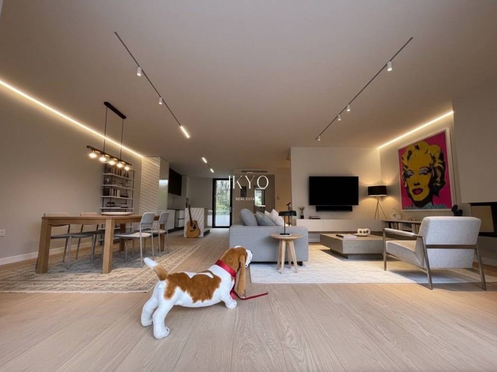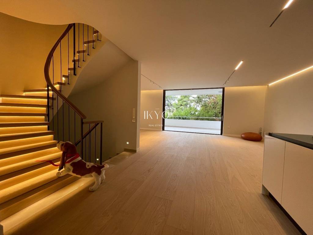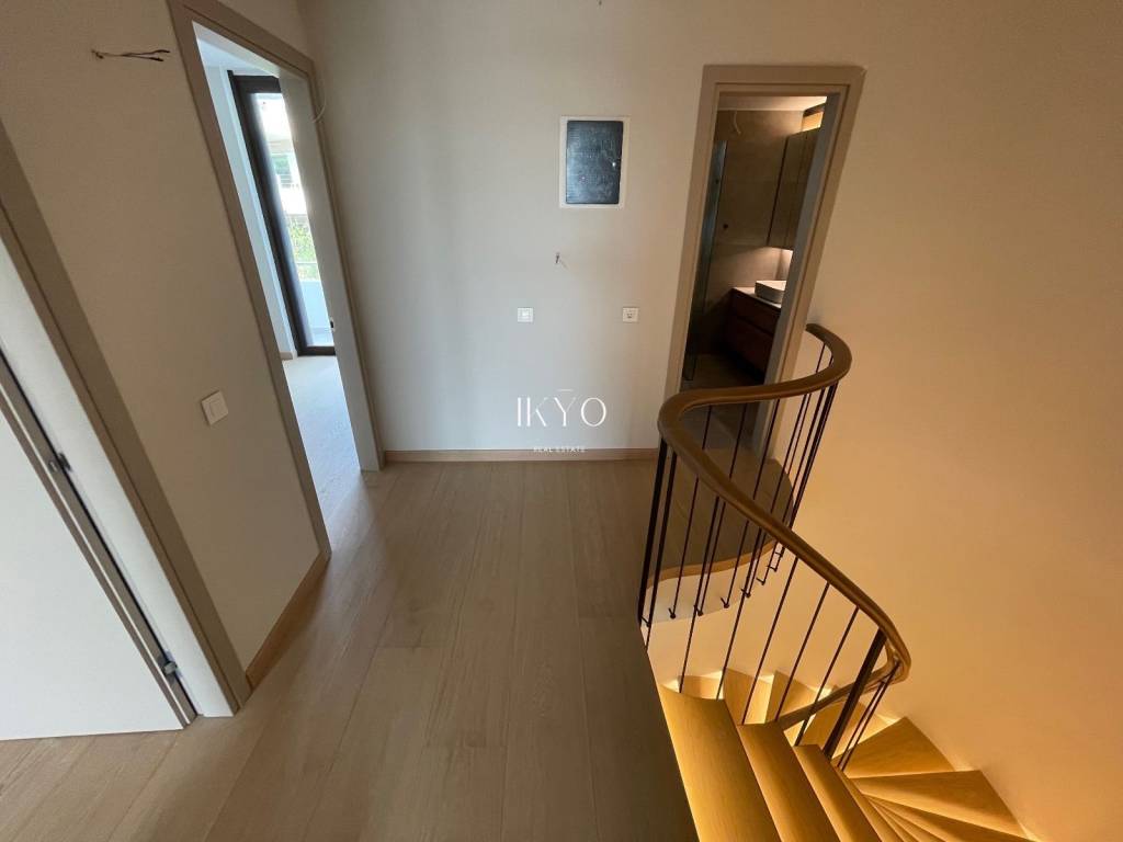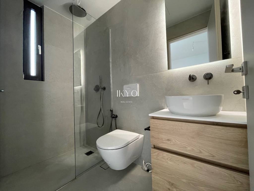 VOULA Renovated Duplex 160 sq.m. 1st level: Bright living room, open-plan kitchen with integrated laundry area, guest WC, and large front and rear verandas (approximately 20 sq.m. + 7 sq.m.). 2nd level: 3 bedrooms (one is ensuite with its own bathroom), plus 1 additional bathroom shared by the other two bedrooms. All bedrooms have balconies. Features: Autonomous natural gas heating, air conditioning for cooling and heating, high-quality wooden floors, fireplace pre-installation. Includes one parking space and a 7.5 sq.m. storage room. Residents also have access to a recreation area on the ground floor. Location: In the Dikigorika area of Voula, about 1 km from the beach. A quiet and green neighborhood with easy access to beaches, shops, schools, and public transport; just a few minutes from Glyfada and the Elliniko development.
