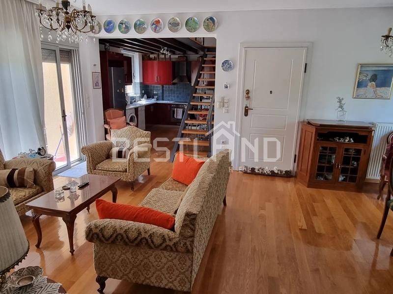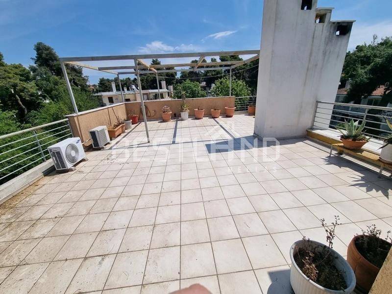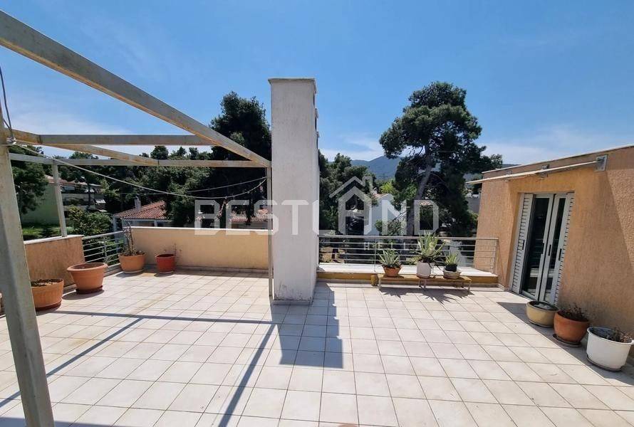 Drosia - Apartment 92sqm bedrooms 2, levels 1, 2nd, penthouse, good condition, year built 2007, energy class B, living room, kitchen, bathroom, heating type: autonomous (oil), air condition, parking covered, quiet, dual aspect apartment, luminous, unobstructed view, frontage, storage space 12sqm, boiler, fireplace, balconies, large balconies, elevator, loft storage, private terrace, terrace 74sqm, aluminum frames, double glazed windows, door screen, wood floors, three phase electricity, secure door, pets allowed, residential zone, west-southern orientation, access from asphalt.