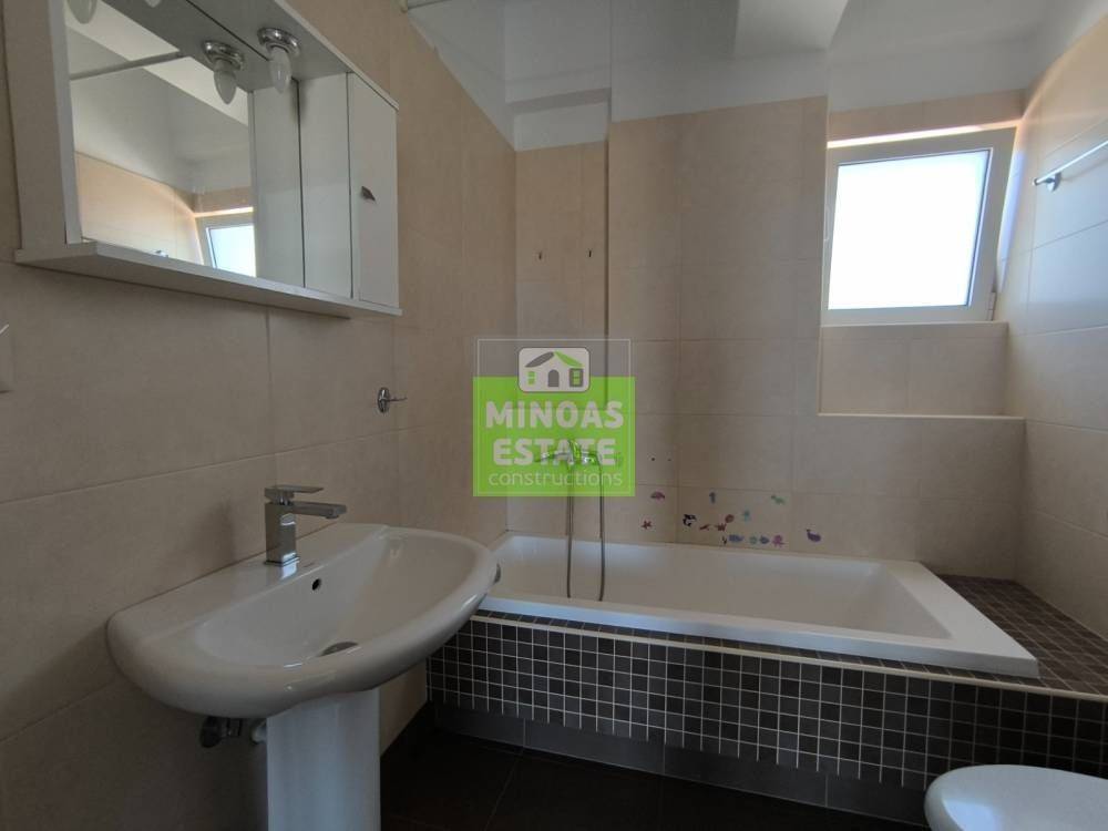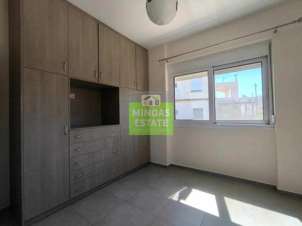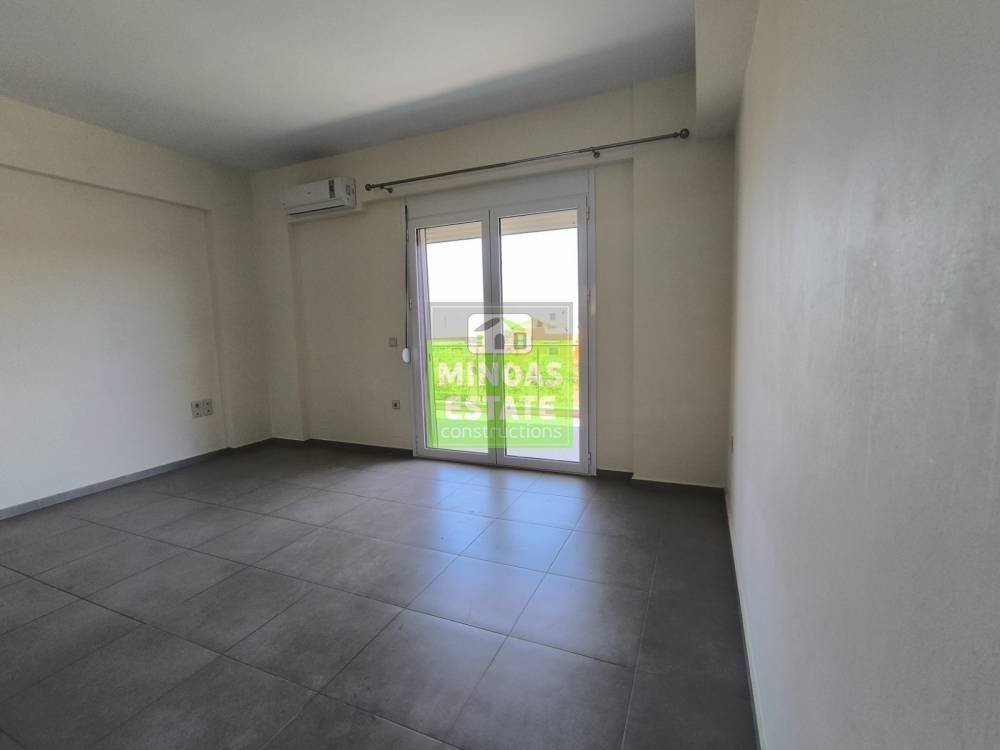 Akrotiri, Kounoupidiana: Newly built airy and very bright apartment for rent, 75 sq.m. on the 1st floor with individual heating (air conditioning in all rooms). It consists of 2 comfortable bedrooms, 1 kitchen-living room, storage room, bathroom and large terraces. It is built in 2017, painted, close to SCHOOLS-PHARMACY-SUPERMARKET and has a city view, thermal facade and satellite antenna, aluminum frames with double glazing, armored door, 2 outside parking spaces, energy class B, tile floors, screens, solar water heater. It is ideal for families or workers with a minimum share of 5 euros. Price €700 (long-term rental with contract) | Property Code: #E-201176