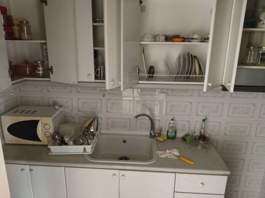 Διαμέρισμα 84τμ καθαρά αποτελείται από 2 δωμάτια καθιστικό σαλόνι διαμπερές φωτεινό με ατομικό καυστήρα πετρελαίου. χρειάζεται ανακαίνιση