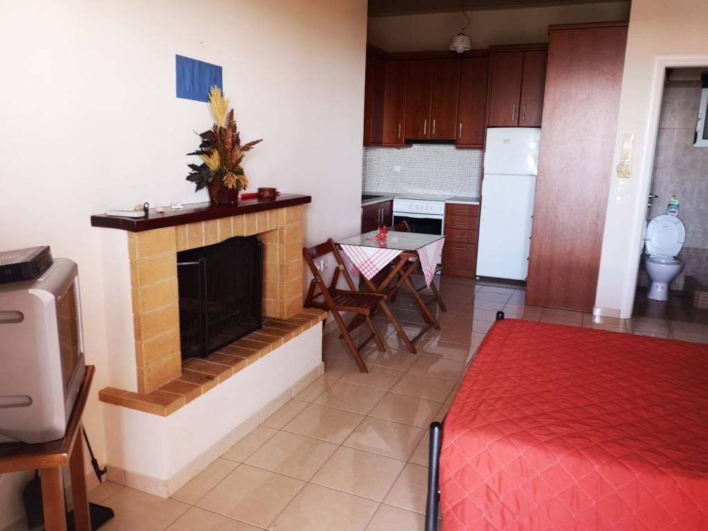 -- Studio for Rent 30 sq.m. with Fireplace -- Studio of 30 sq.m. with an open-plan living room, kitchen, and bedroom, plus a separate bathroom. Fully furnished and equipped, with a balcony and sea view. Features a fireplace, air conditioning (A/C), and autonomous heating.