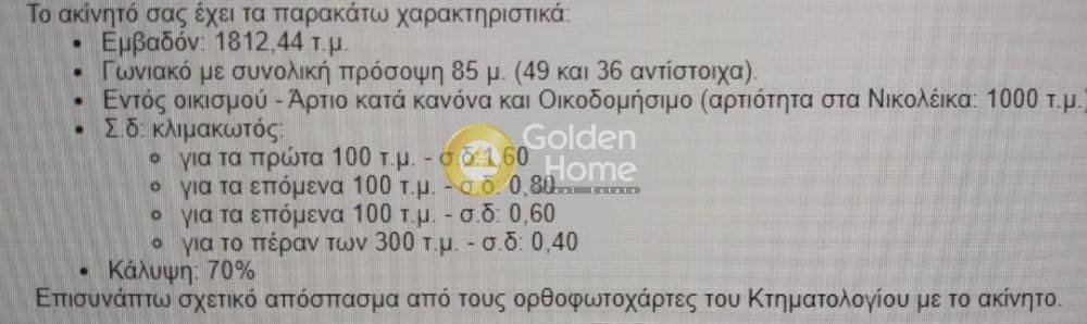 Γωνιακό οικόπεδο με εσπεριδοειδή 500 μέτρα από τον προαστιακό σταθμό στα Νικολαίικα Διακοπτού. Πρόσοψη 85 μέτρα (49 και 36 αντίστοιχα).