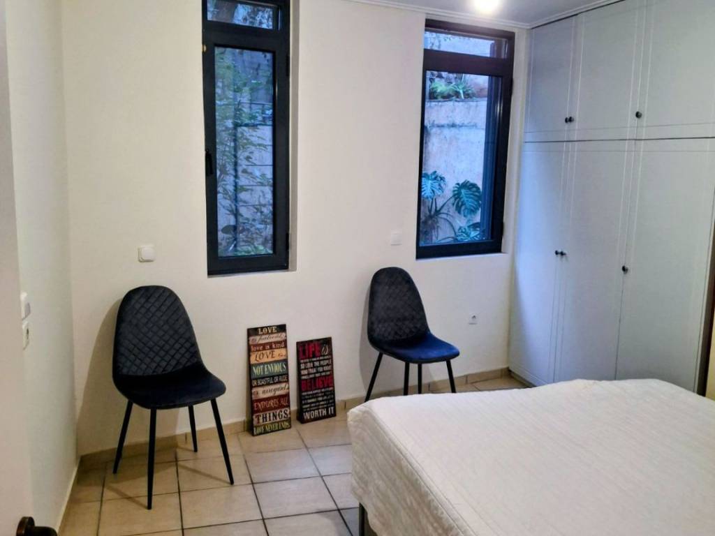 Ground floor apartment with own entrance on quiet pedestrian street/staircase. Very quiet apartment resembles village living in the centre if Athens. It is very well lit and airy. From the bedroom windows you can see the garden and the pedestrian lawn from the living room. The price is negotiable, apartment furnished.