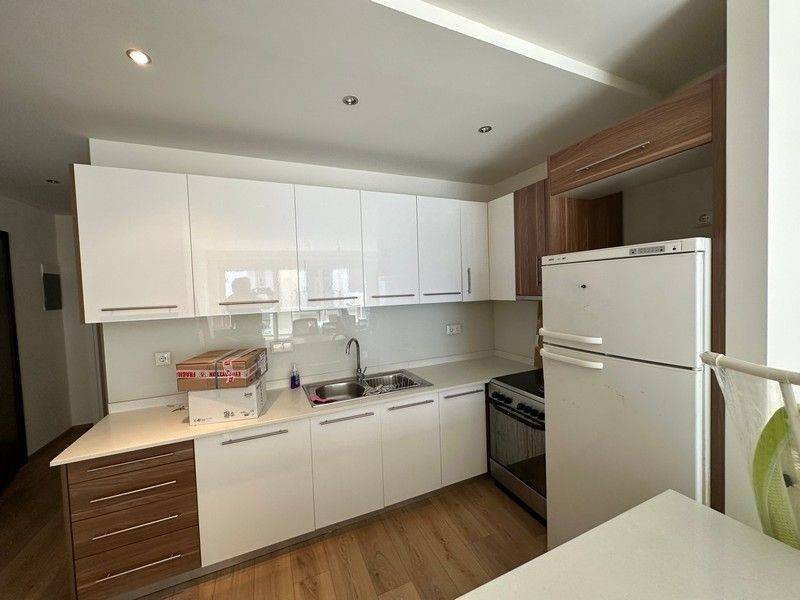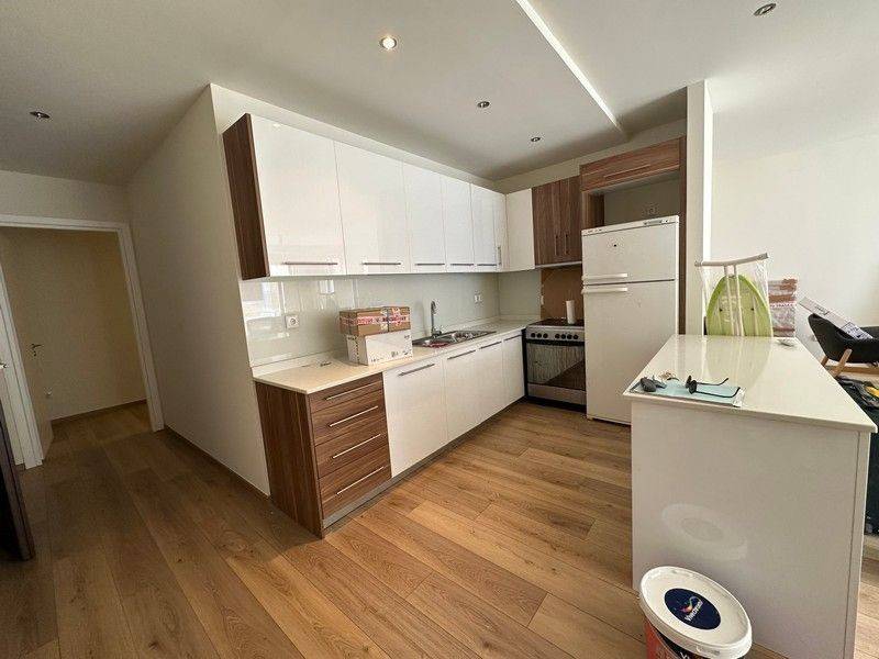Center for sale luxurious newly built two-room apartment, 2nd & 3rd floor, 65 sq m, with permit date in 2014 and completion in 2020, frontage, bright. It has a kitchen, open plan living / dining room, bathroom, a large bedroom with large built-in wardrobes, air conditioning, solar water heater, storage room and parking space. The apartments are rented.