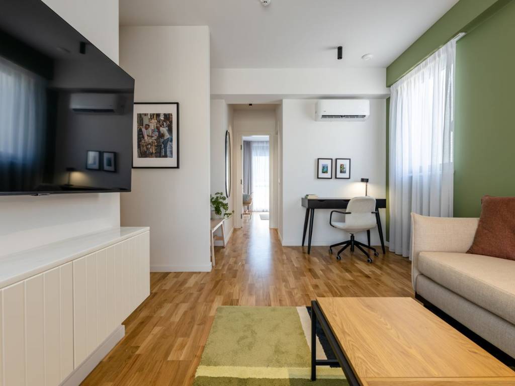 Our new building at Tzavella 25 in Exarchia is now ready for rent, offering furnished, self-contained apartments (studio or with separate bedroom) from 30 to 60 sq m. The building features a washer and dryer, a lounge with offices for relaxation and a terrace with a magnificent view of Lycabettus, for use by residents and their guests. The apartments are independent, fully furnished with kitchen and electrical appliances, 50'' smart TV, air conditioning system, natural gas, security door, intercom, balconies or verandas, ideal for both young professionals and students interested in acquiring a modern apartment. The rental can be for a minimum period of three months to one year with the possibility of renewal. Use of the terrace with a view of Lycabettus for relaxation is included! Why with Diamona Greece? What does my rent include? Benefits / Bills worth €181 per month - or €2,172 per year! -Private router in each apartment for endless surfing per month: €26.00 -Unlimited water use per month: €10.00 -Electricity and use of shared washers & dryers per month: €15.00 -Natural gas for hot water in the bathroom per month: €30.00 -Monthly shared costs per month: €100.00 -Electricity of shared areas, lights, elevator costs -Gardener -Cleaning of shared areas/disinfection of laundry facilities - 3 times a week per month: €181.00 Additional free services & maintenance, worth €390 per year: -Elevator maintenance (once a month): €11 -Gardener (maintenance of plants in the apartment & automatic watering setup every 4 months): €71 -Fumigation in common areas (2 times a year): €11 -Change of batteries for automatic watering & smart locks (once a year) €21 -Data room & internet maintenance (once a year): €31 -Fire extinguisher refill (once a year): €11 -Air conditioner maintenance (once a year): €41 -Boiler, water heater & natural gas maintenance: €51 Total, how much money do I save if I rent in Diamona, where in another apartment I would pay myself? per month: €214.50 / per year: €2,574.00 Plus - Free 24-hour support & security! -24/7 technical support for technical issues (e.g. lamp replacement, plumbing & electrical failures, including the cost of materials and labor) -24/7 telephone support for questions & requests -24/7 security cameras in common areas -Night security shift by specialized personnel -Fire safety in all apartments with immediate notification -Automatic notification to the company and the police in case of burglary -Smart locks using a card and a mobile application for remote unlocking & telephone support in case of loss -Possibility of holding events in the lounge or terrace (e.g. birthdays, get-togethers)