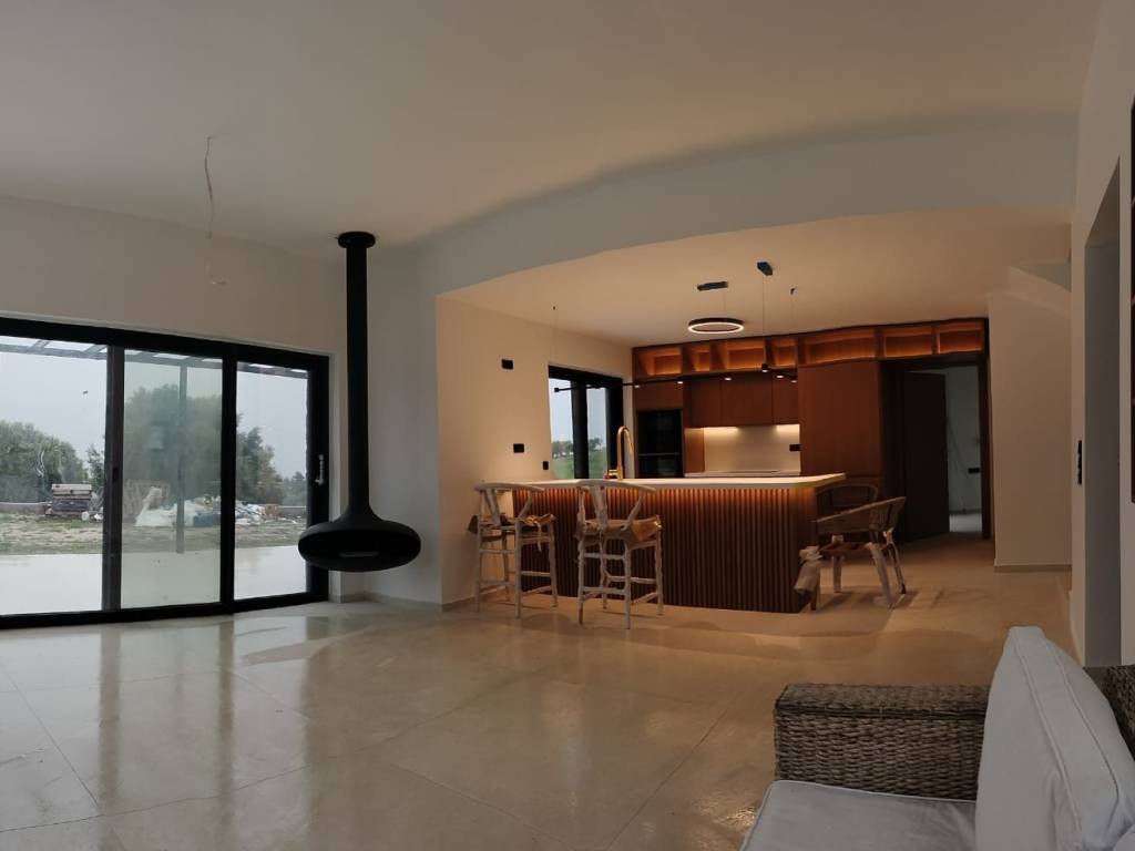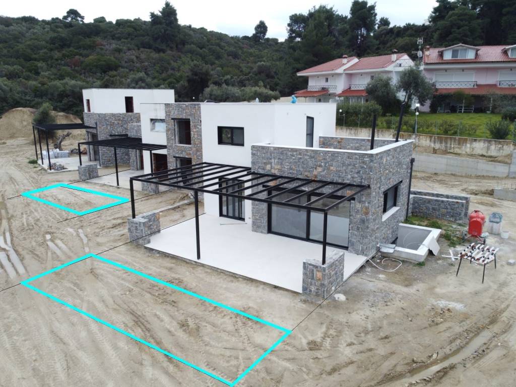 The complex consists of 3 independent summer villas in the prime location of Glarokavos bay only 400 meters from the sea and the lagoon. Each villa consists of 3 volumes, parallel but slightly protruding from each other: - 1 stone volume with a veranda - 1 two-storied middle volume of light grey stucco sharing a pitched roof with - 1 two-storied stone volume. Privacy , autonomy and sustainability . Construction quality second to none! Materials: concrete Interbeton-Titan, reinforcement Sidenor, bricks highly insulating ΚΕΒΕ orthoblock Κ250, waterproofing Penetron, heat insulation 8-10cm graphite Fibran / Styropan, frames Elvial, heat pump LG / Bosch , natural stone masonry , Italgranity tiles, Siemens or Miele appliances
