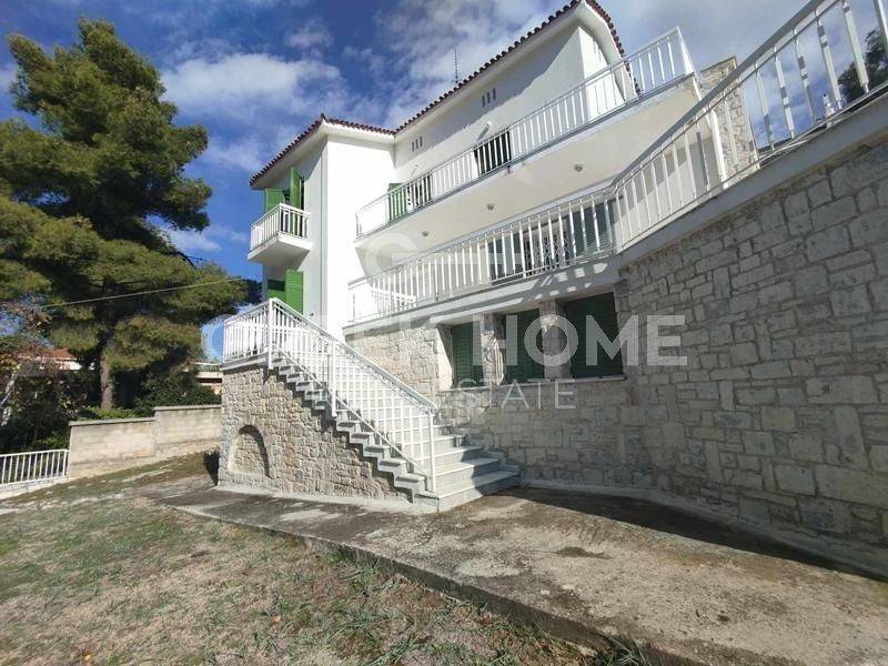 Nea Erythrea, Kastri - Detached House 310sqm plot 830sqm, bedrooms 3, levels 3, semi-basement (90sqm) - upper floor (110sqm) - 1st (110sqm), renovated, year built 1963, renovation year 2021, energy class E, living room, kitchen, 3 bathrooms, wc, heating type: autonomous (oil), air condition, parking covered, quiet, dual aspect apartment, luminous, panoramic view, frontage, storage space, boiler, external thermal insulation, fireplace, balconies, large balconies, garden, thermal shut-off frames, double glazed windows, wood & marble floors, separate kitchen, night electricity discount rate, secure door, internal staircase, playroom, service room, laundry room, close to square (up to 500m), close to bus stop (up to 100m).