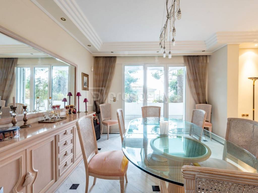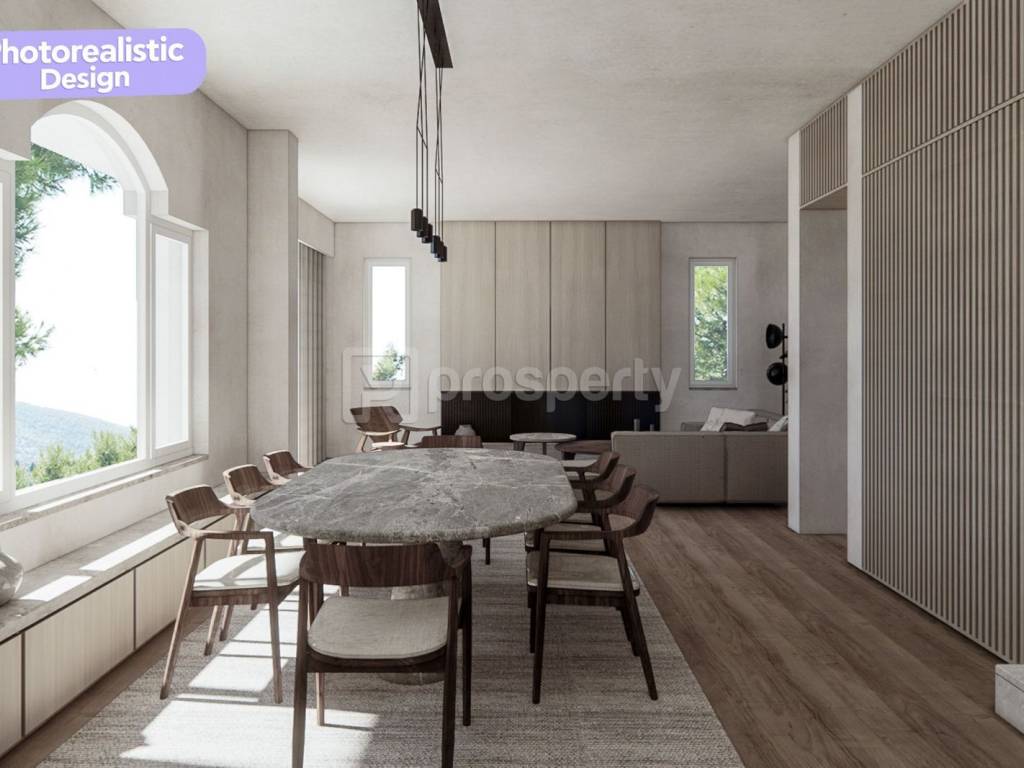 This is an impressive property with an unlimited, panoramic, painting-like view towards Penteli and Parnitha. In addition, it has a southwest orientation, thus offering favorable lighting and heating conditions. The plot is 450 sq.m. angular, with a slope that allowed the creation of 4 floors. Three of them have direct access to a garden, thus offering opportunities for outdoor activities. The property has a total area of ​​450 sq.m. and was built in 2000. The residence includes many amenities, such as security doors, double aluminum frames, underfloor heating - oil, alarm, storage rooms, 2 fireplaces, verandas on each level, elevator, parking for two cars. Pentelic marble floors in the common areas and wooden floors in the bedrooms, offering a luxurious character. In detail, the basement of 107 square meters consists of an independent studio, with a bathroom and waiting room for a kitchen and direct access to the garden, an elevator, and an engine room of the residence. The entrance is from the parking area for two cars. Elevated ground floor with a total area of ​​125 square meters with direct access to the garden and large terraces has an unlimited view and consists of a hall, a comfortable dining area, a kitchen, a living room with a fireplace, a bathroom, a storage room and an elevator. The first floor of 115 square meters is not finished yet, but all that is needed is a floor and a kitchen. It consists of an independent entrance with a security door, a hall, a cloakroom, a WC, a kitchen with access to a large terrace with a waiting area for a barbecue, a large living room with a fireplace and a dining room with access to a very comfortable covered terrace with an unlimited view. The second floor of 110 square meters consists of 3 bedrooms, one master with a bathroom and another bathroom on the floor, an attic with a terrace with a view, a spacious laundry room and an elevator. All bedrooms are very bright. It is worth noting that special care has been taken during the construction of the property with options such as the use of the anti-seismic mantle and thermal insulation on all levels and underfloor heating. This property is an opportunity for those looking for a luxury residence in the green Dionysos. https://marketplace.theprosperty.com/listings/7646 ☎️ 210 6812500.