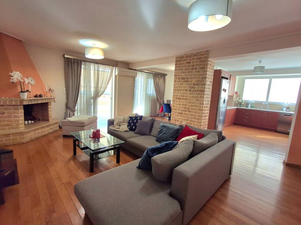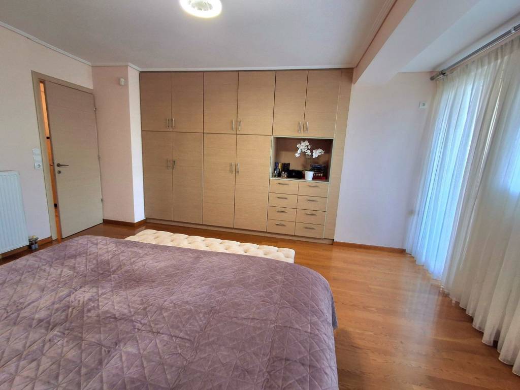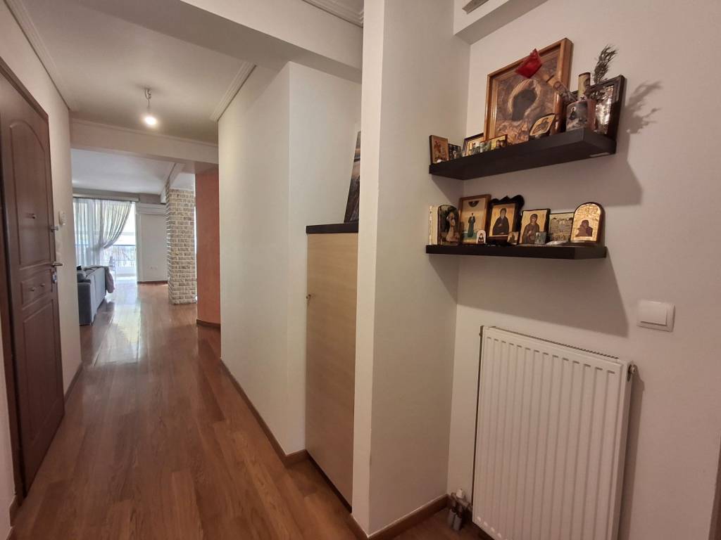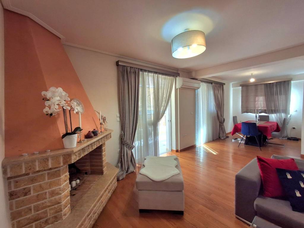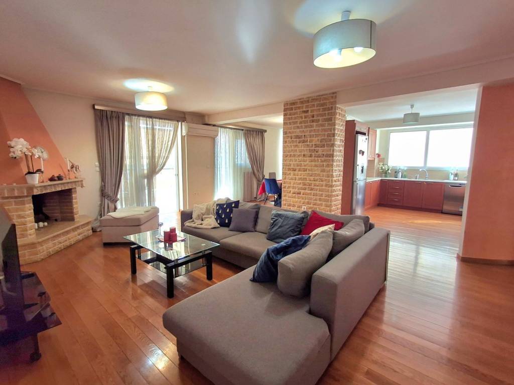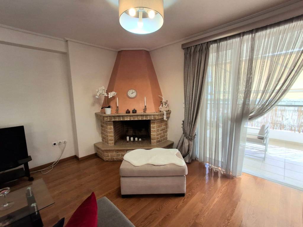 Beautiful 3 bedroom apartment on 3rd floor with sea view and mountain view from sides. It has an open plan spacious kitchen, 3 comfortable bedrooms (from which one can be made as Master), 2 bathrooms with windows, fireplace, big balcony with bbq, solar panel for hot water, autonomous heating, parking space and big storage space. Near main shopping street, supermarkets, restaurants, schools and a park. Elliniko metro station within 2 km and Glyfada beach within 3 km.
