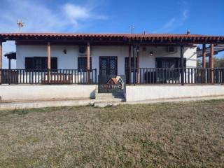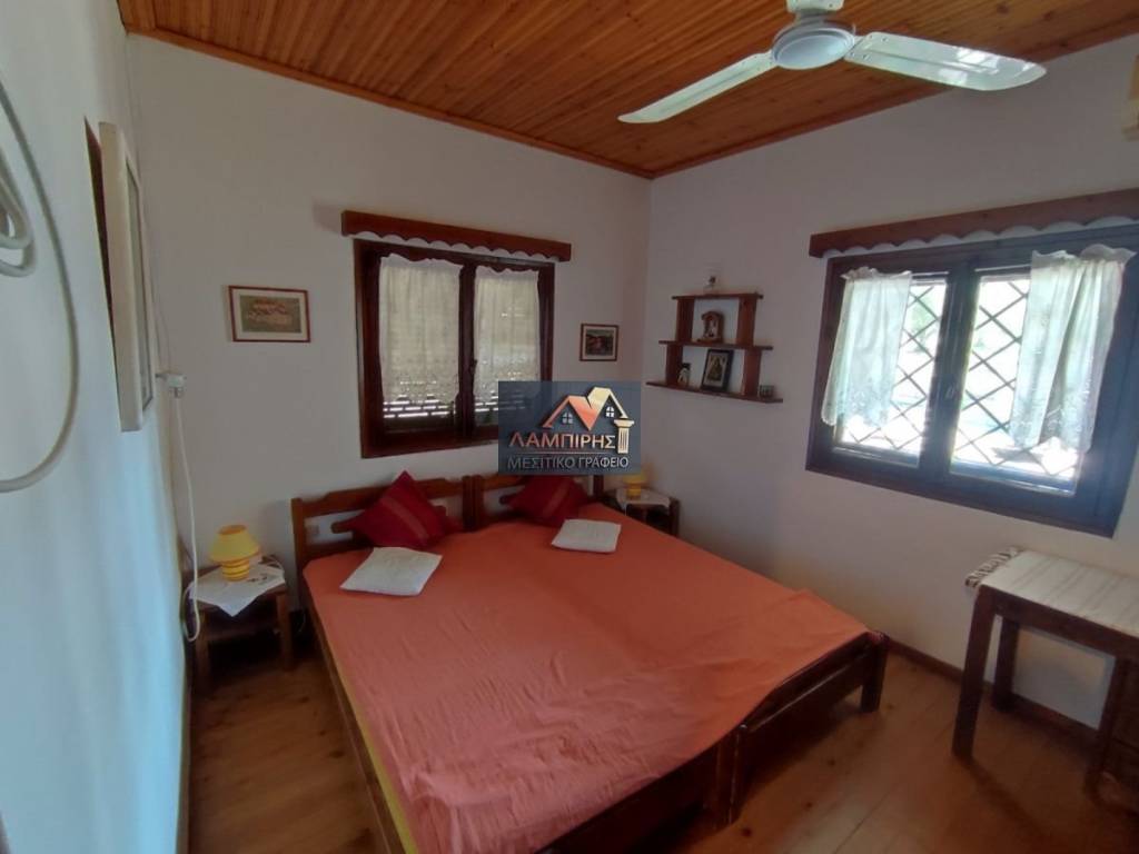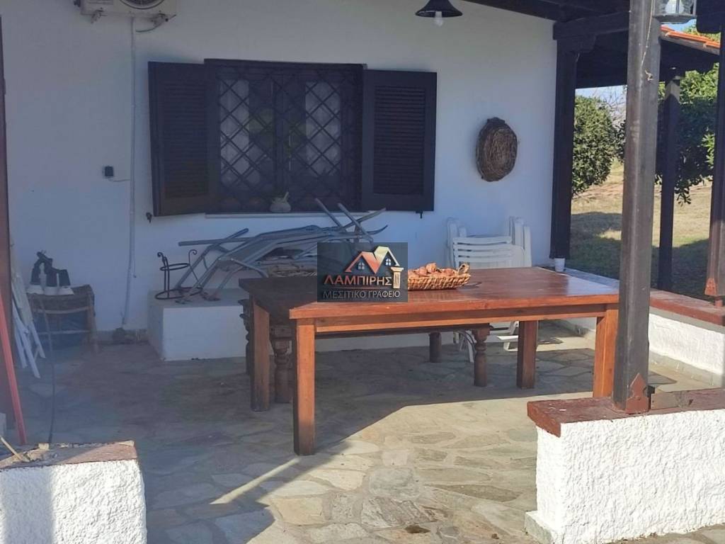 Detached house for sale, 130 sq.m., within 3000 sq.m. plot outside Nea Moudania, Halkidiki, with a stunning panoramic view of the sea. The residence consists of 3 bedrooms, living room, kitchen and bathroom. Particularly well-kept garden with trees, rock gardens, water tanks and BBQ. There is the possibility of additional construction. more information upon contact.