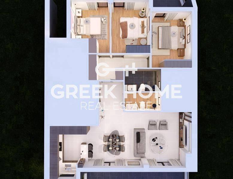 Nea Smyrni - Floor Apartment 110sqm unfurnished, bedrooms 3, 6th, under construction, constructionstage concrete, year built 2025, energy class A, living room, hall, kitchen, bathroom, wc, heating type: autonomous (fan coil), air condition, parking covered, quiet, dual aspect apartment, luminous, unobstructed view view, frontage, painted, electric roller shutters, storage space 6sqm, solar heater, external thermal insulation, fireplace, balconies, large balconies, balcony 35sqm, tents, elevator, aluminum frames, double glazed windows, door screen, wood & tile floors, handicap ramp, separate kitchen, secure door, alarm, video doorbell, satellite, internet, pets allowed, price is negotiable, close to square (up to 500m).