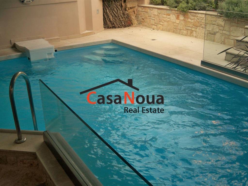 Καστριτσα πολυτελή ανεξάρτητη μεζονέτα. Κατασκευής 2012. 400τμ τριών επιπέδων με πισίνα , ασανσέρ και υπόγειο .     Το πρώτο επίπεδο (ισόγειο) περιλαμβάνει :  Μεγάλο playroom με τζάκι , δυο υπνοδωμάτια , δυο μπάνια , αποθήκη ,δωμάτιο υπηρεσίας .  Το δεύτερο επίπεδο (α όροφος, είσοδος ) περιλαμβάνει : Χώρο υποδοχής, επιβλητικό σαλόνι με τζάκι , τραπεζαρία και μεγάλη βεράντα , ανεξάρτητη ευρύχωρη κουζίνα ,wc ξένων και πρόσβαση στον κήπο και στην πισίνα .  Το τρίτο επίπεδο (β όροφος ) περιλαμβάνει : τρία υπνοδωμάτια το ένα μάστερ ( με μπάνιο ) και ενα με μπάνιο εκτός δωματίου.  Το υπόγειο έχει αποθήκες και παρκινγκ .    Αυτόνομη (ατομική) θέρμανση , σύγχρονος συναγερμός , δορυφορική κεραία ,αποθήκη, ανελκυστήρα, κήπος ,πισίνα .