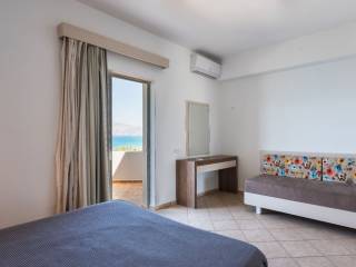 Available for daily rental for the summer season and monthly rental for the winter period. The one-bedroom apartment, which belong to a complex of nine apartments, is available for rent. It has a practical kitchen and living room. It's a second floor apartment. It has two balconies, one overlooking the town of Kissamos and one overlooking the beach, which is literally 5 meters away. The kitchen and bathroom are equipped with all fittings. The master bedroom has a double bed and a sofa bed, while the living room has two sofa beds. In this way the apartments can accommodate up to 5 people, regardless of age. Guests have access to both balconies which are independent from other guests. There is free parking behind the house. The town square, where the supermarket, restaurants and bus station are located, is just a 5-minute walk away.