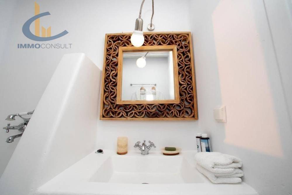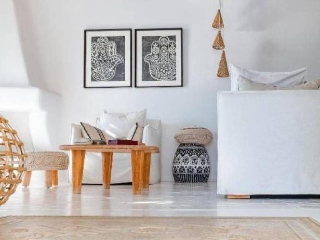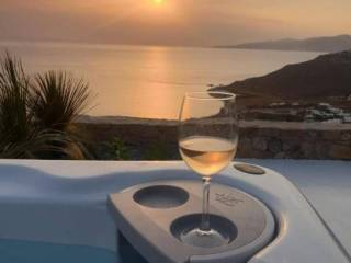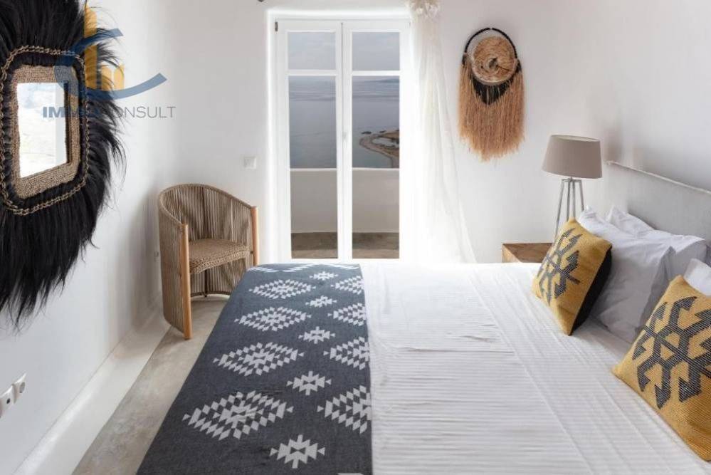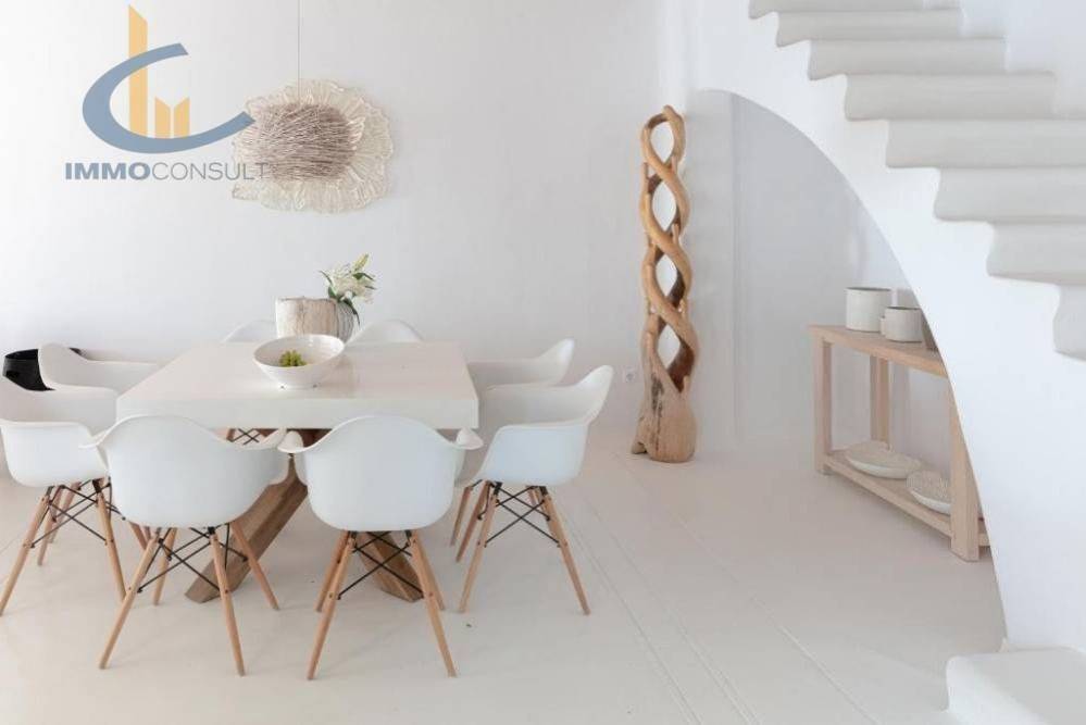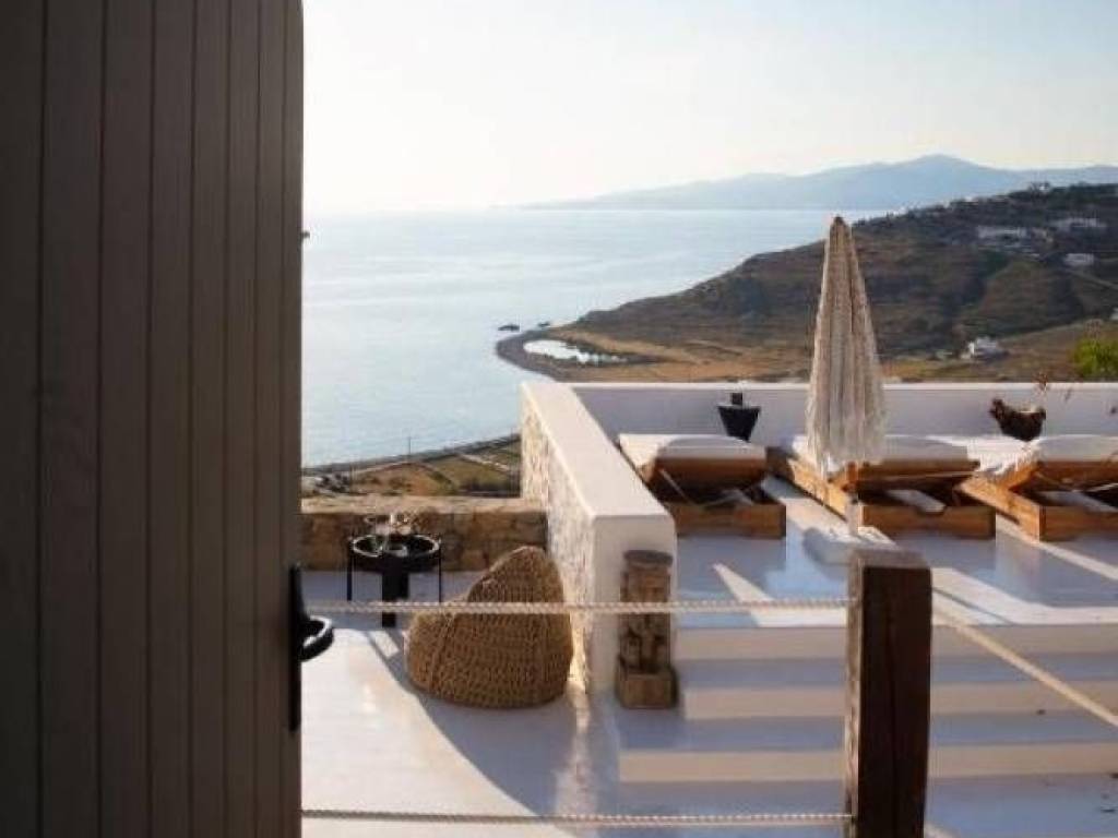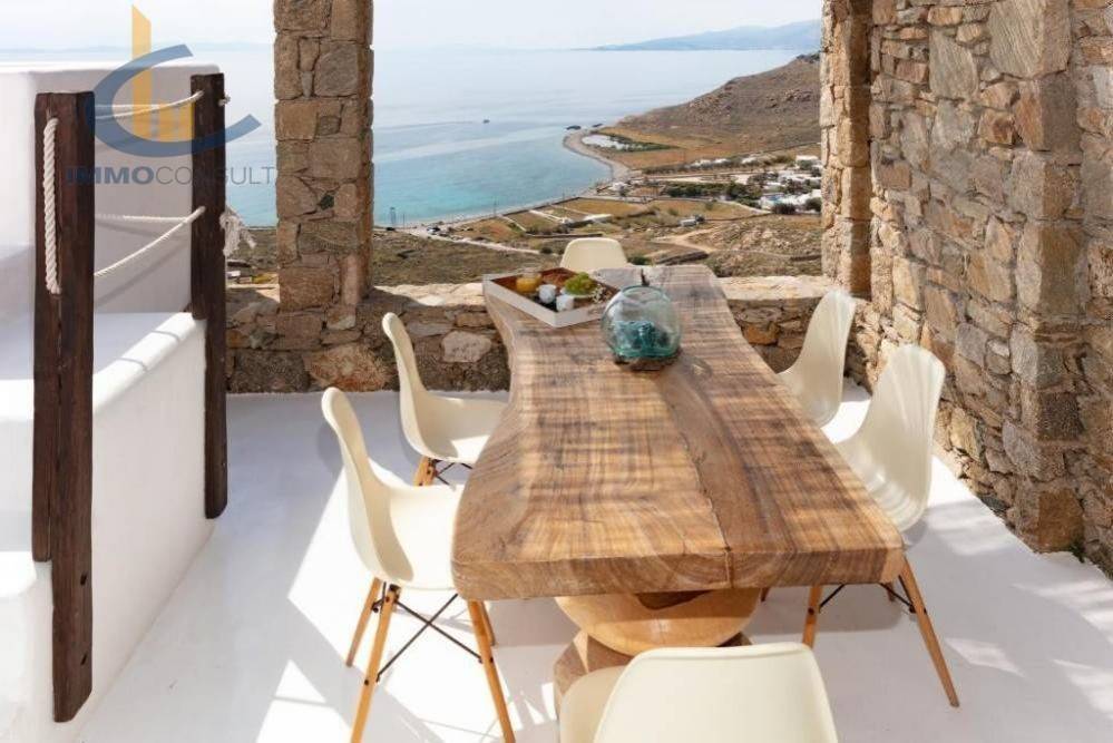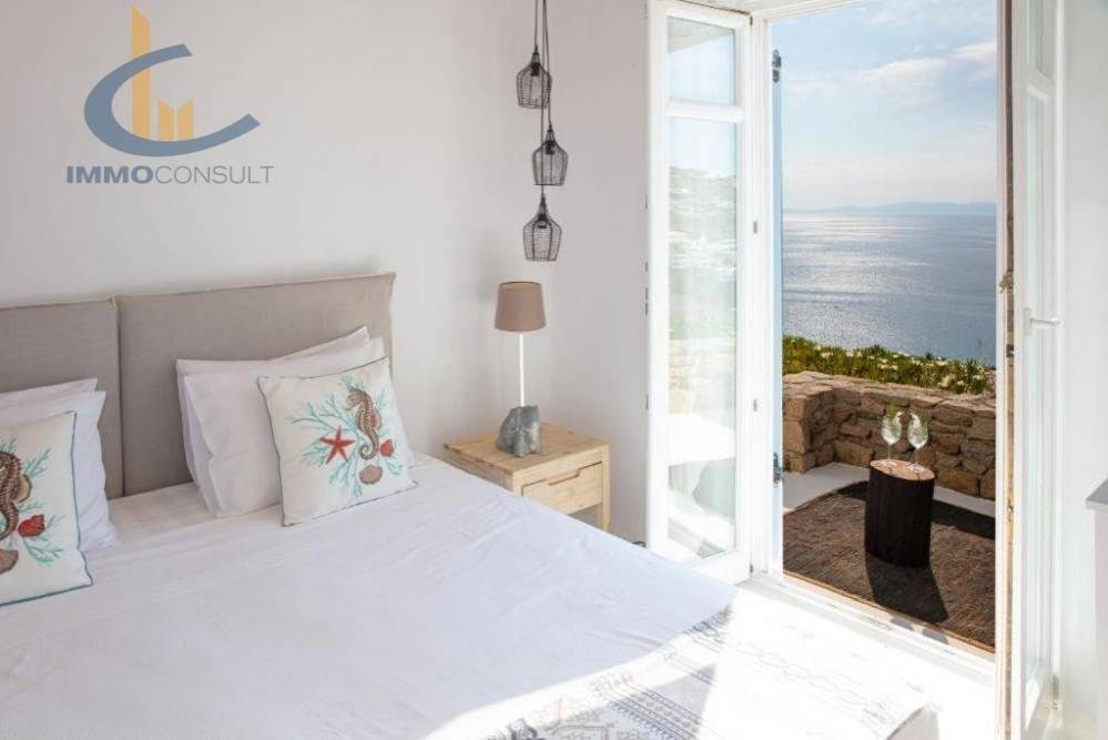 Mykonos, Houlakia: 1.7km. from Agios Stefanos Beach, with panoramic sea view, 150 sq.m. Villa for sale. in a complex of 5 houses, with its own independent entrance and permission for a swimming pool. The Villa has 3 Master bedrooms with a view, living room kitchen with fireplace, terrace with pergola and dining room, its own private terrace with jacuzzi, internal staircase, access to the shared pool, Breathtaking sunset view, shared Parking for the whole complex, garden, air conditioners, rooftop solarium, suite, island style, modern, luxury, available furnished as in photos. It is recommended as a holiday home, but also for an investment with a good return. Price €920,000 | Property Code: #18731