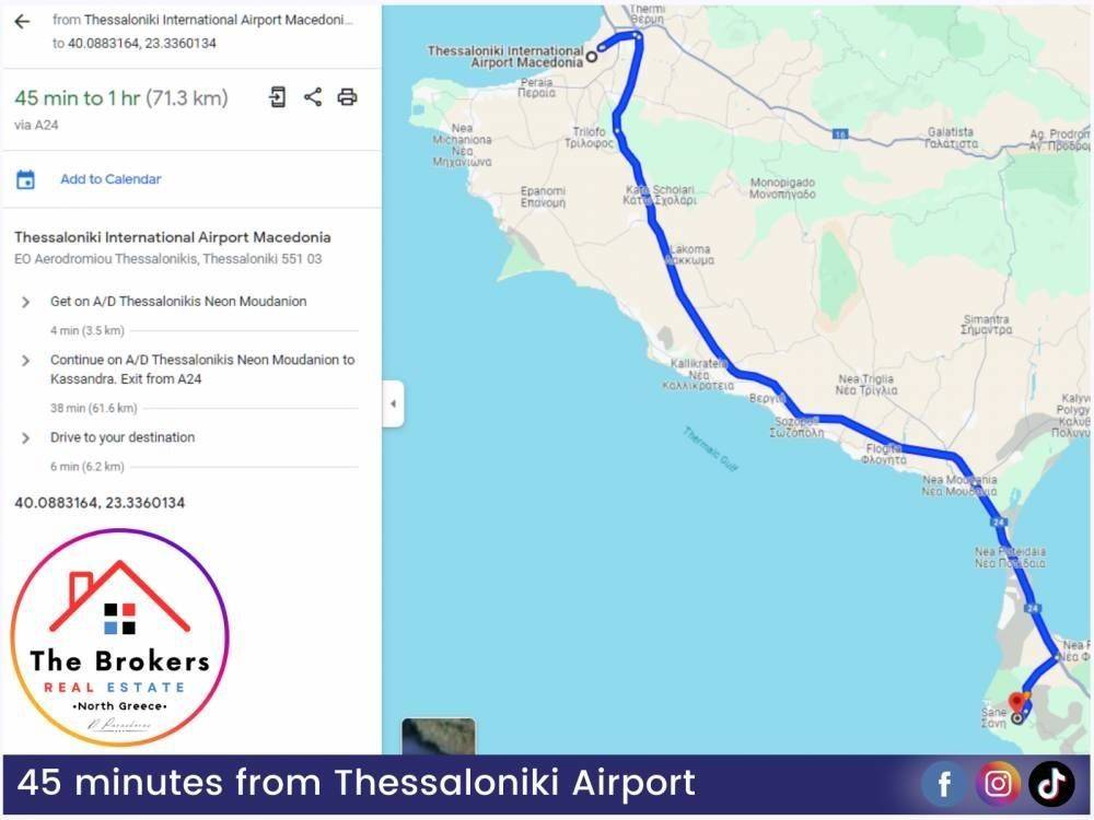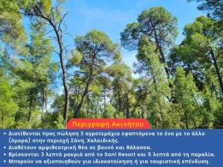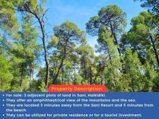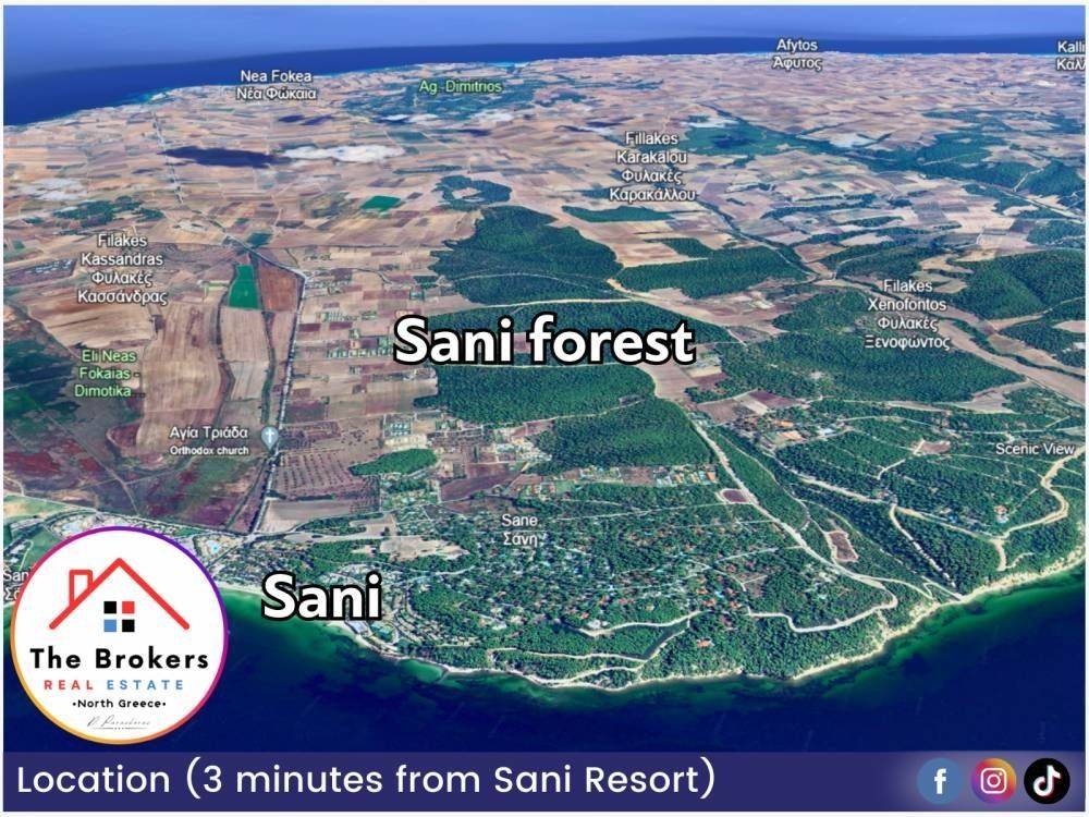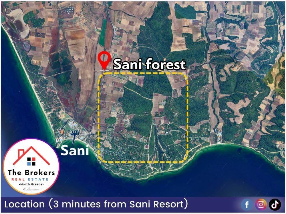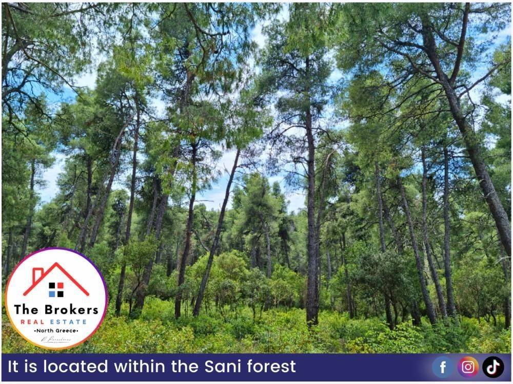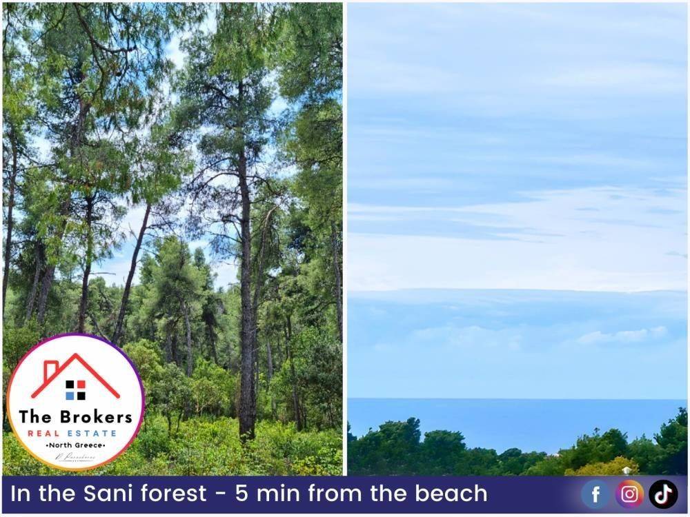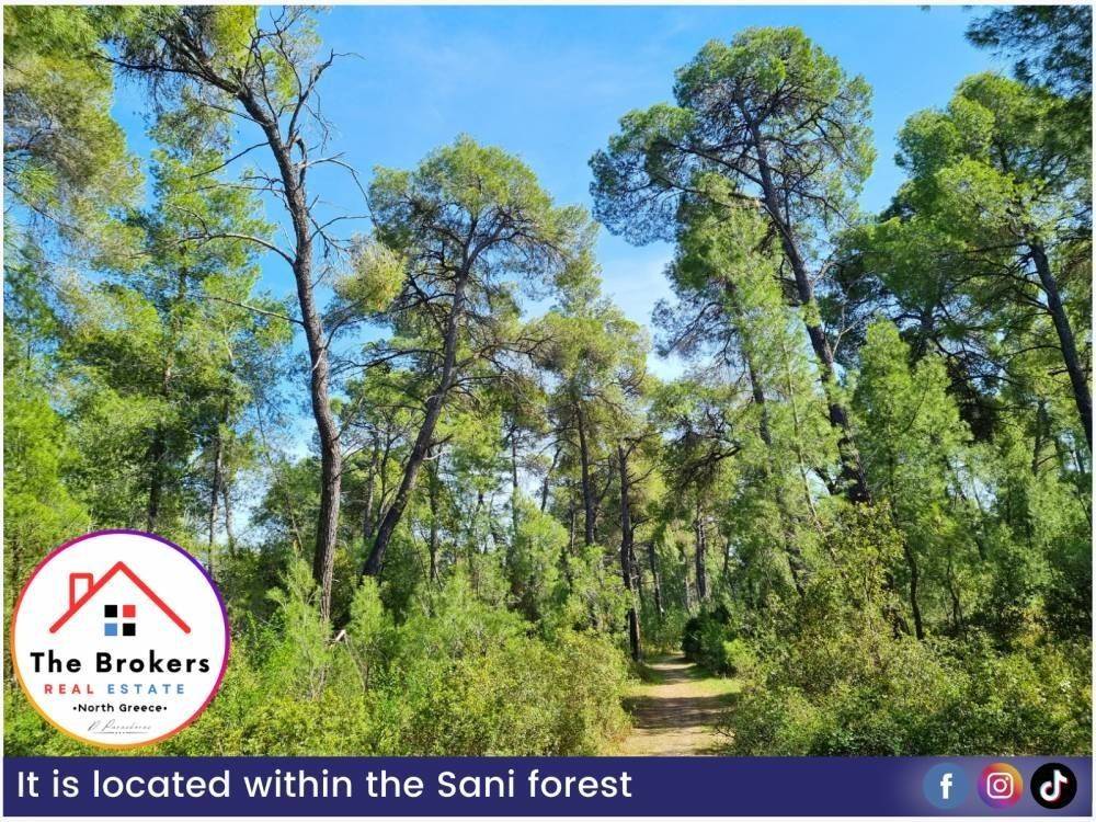 Χαρακτηριστικά: Το αγροτεμάχιο βρίσκεται μόλις 5 λεπτά από τη θάλασσα και προσφέρει θέα τόσο στο δάσος όσο και στη θάλασσα. Είναι τοποθετημένο μέσα στο δάσος της Σάνης, με εύκολη πρόσβαση από τον δρόμο και σε απόσταση μόλις 3 λεπτών από το Sani Resort. Ο βορειοδυτικός προσανατολισμός του χαρίζει μοναδική θέα στο ηλιοβασίλεμα, ενώ η θέση του εξασφαλίζει ιδιωτικότητα, ηρεμία και υψηλό επίπεδο ασφάλειας. Διαθέτει δυνατότητα δόμησης περίπου 600 τ.μ. για ιδιωτική χρήση ή έως 3.000 τ.μ. για τουριστική εκμετάλλευση, χωρίς να υπολογίζονται υπόγεια και σοφίτες, που αυξάνουν σημαντικά τον ωφέλιμο χώρο.