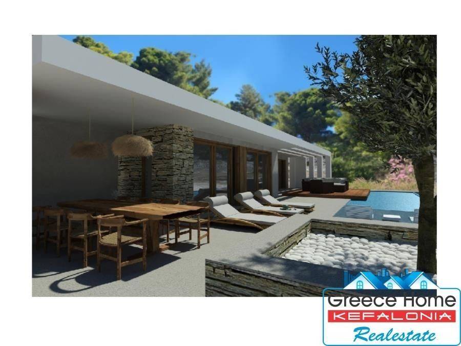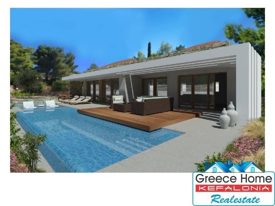 Leivatho, Simotata, Villa For Sale, 125 sq.m., In Plot 496 sq.m., Property Status: Amazing, Floor: Ground floor, 1 Level(s), 1 Kitchen(s), 3 Bathroom(s), 1 WC, Heating: Autonomous - Electricity, View: Sea view, Building Year: 2024, Energy Certificate: Α++, 2 parking(s), Floor type: Tiles, Type of door frames: Aluminum, Features: Security door, Security alarm, CCTV, Night stream, Cable TV, Internet Line, Triple Glazed Windows, Window Screens, Balconies, BBQ, Pets Allowed, No shared expenses, For Investment, Luxury, Airy, Roadside, Bright, On Corner, AirConditioning, Solar water system, Boiler, Stadium, Grass, Automatic Watering, Trees, Swimming pool, Back yard (Garden), New Construction, Distance from: Airport (m): 12000, Seaside (m): 1500, City (m): 13000, Village (m): 500, Price: 595.000€. REAL ESTATE KEFALONIA, Tel: 6906987401, email: info@realestate-kefalonia.com