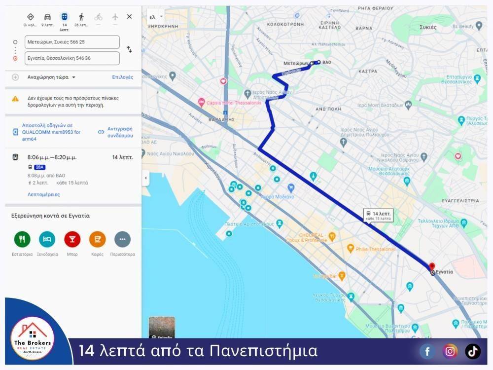 Location: Just a few minutes' walk from OASTH bus stops, markets, a bakery, the V.A.O Indoor Gymnasium, and the First Senior Citizens' Center. With the OASTH 28A bus, you can reach Aristotelous Square in just 10 minutes and the city’s universities in 14 minutes. This makes it a good option for both students and retirees.