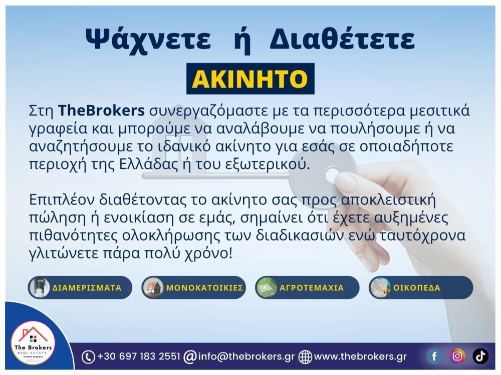 The Brokers Real Estate and its partners operate in accordance with Greek and European brokerage laws. The information and features of the properties have been recorded based on the information provided by the client. Identification is required during the showing of the property according to the terms of the law.