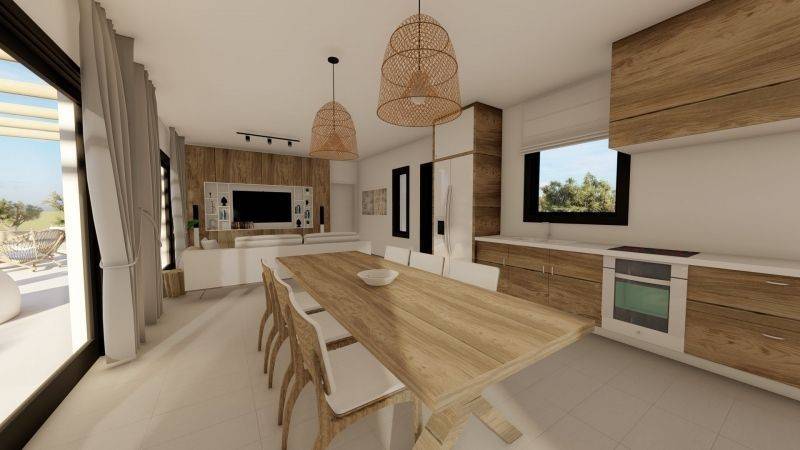 At the quiet village of Pano Sisi, a three bedroom develoment with swimming pool is under construction, offering sea view and to the surrounding nature. The new built property has 107.56m², set on a plot of 2425.88m². The bungalow will be finished to luxury specifications, with a choice of fitted wardrobes, kitchen units, wall and floor tiles. Solar water -heating system and terraces as standard. The master bedroom has an en - suite bathroom. Connection for air conditioning will be installed. Wooden pergolas, BBQ area, fireplace and more details will be built if desired, on request. A short drive to the picturesque fishing harbour of Sisi village with many excellent tavernas.