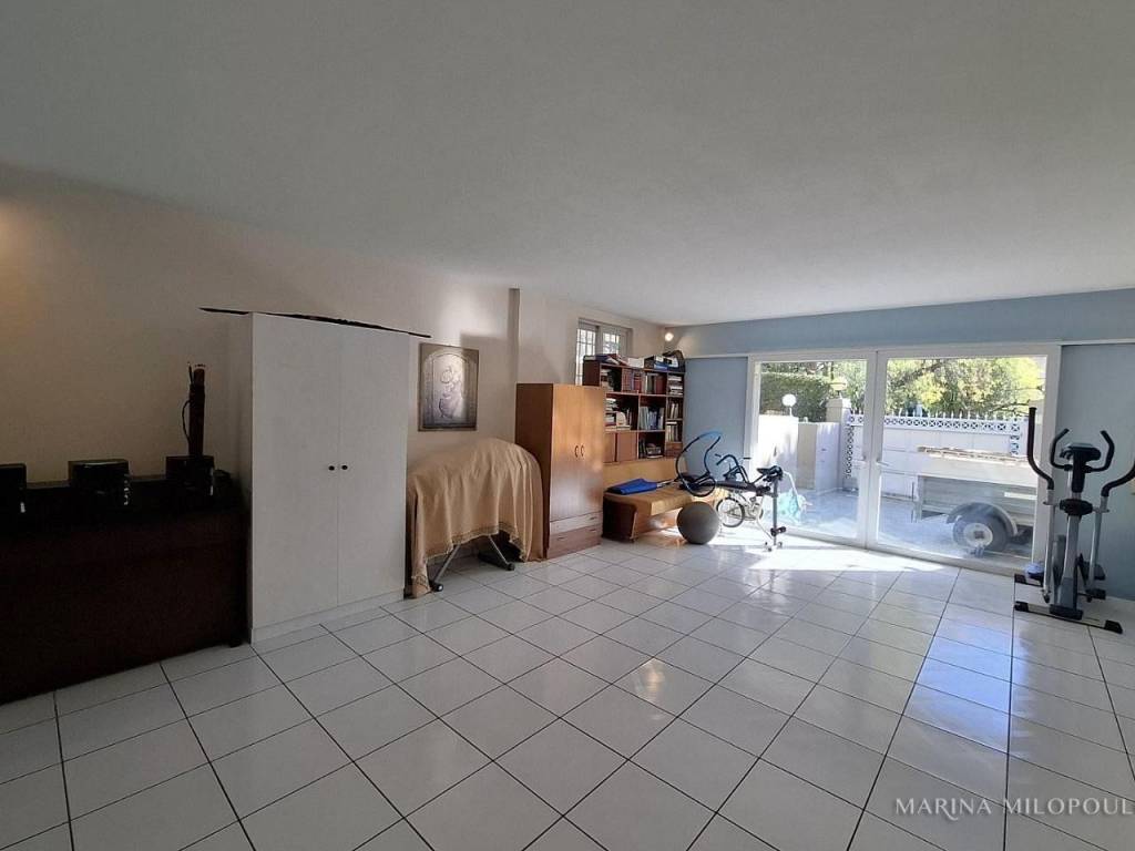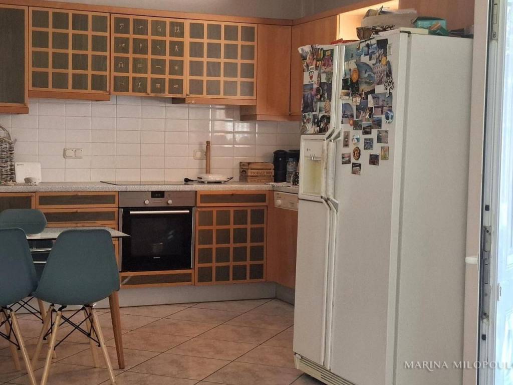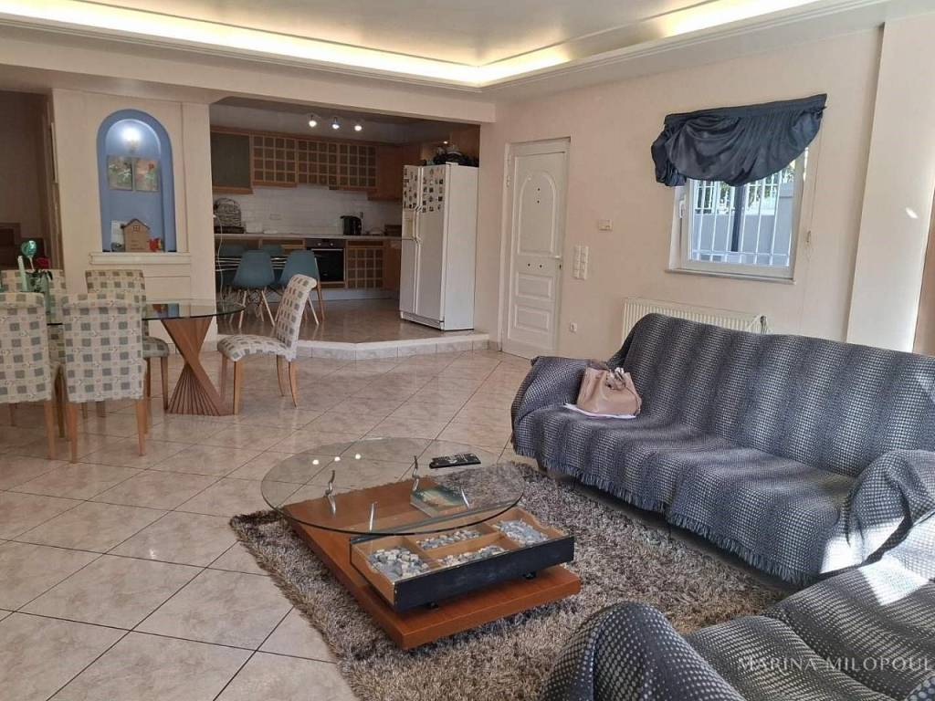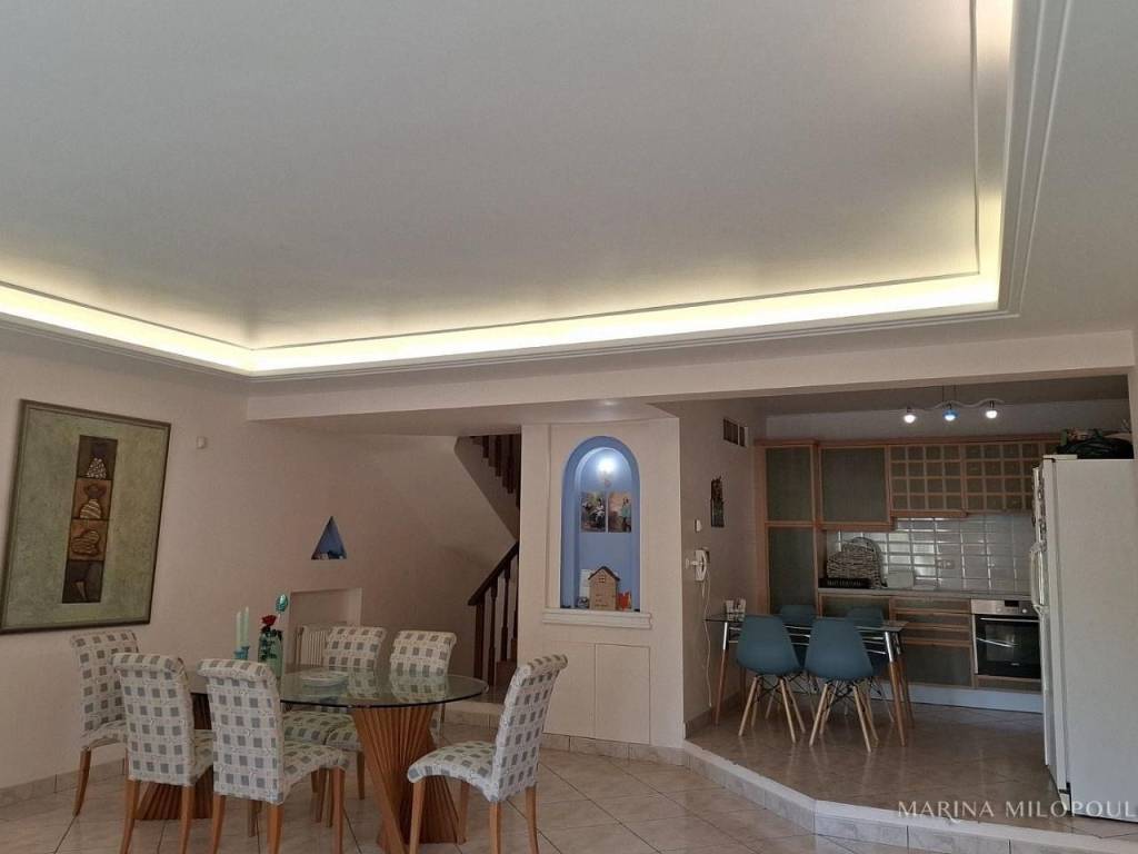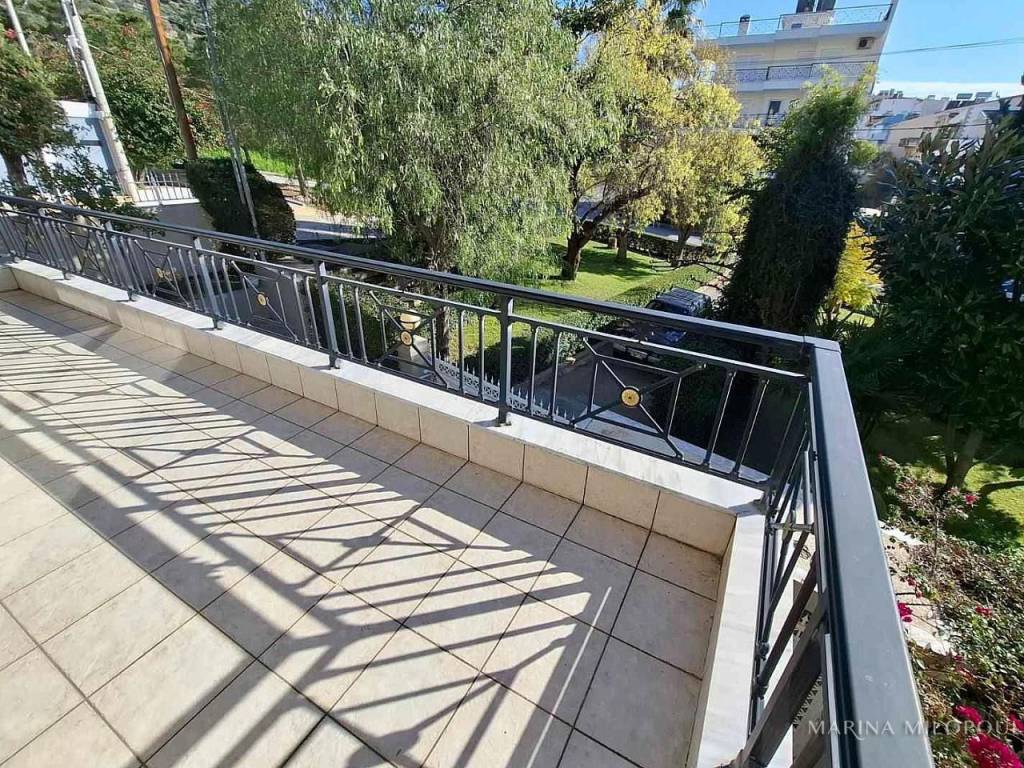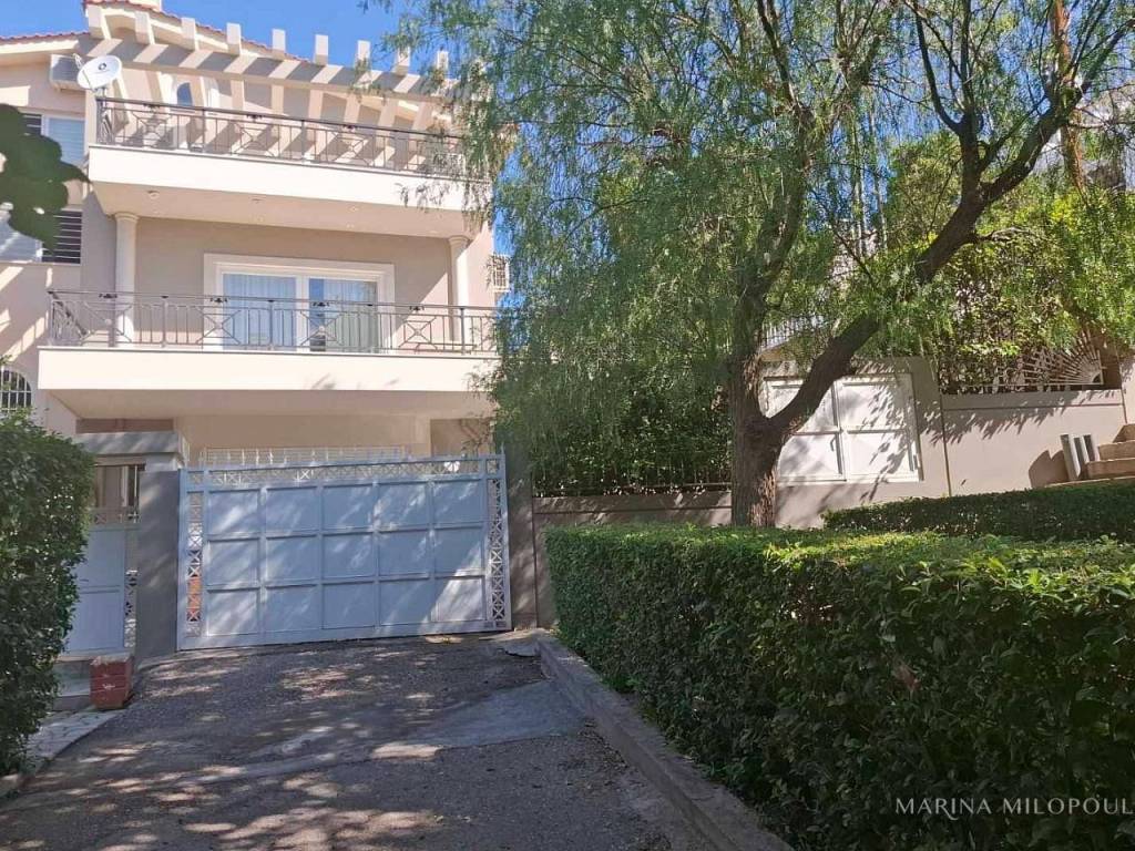 GLYFADA - Aigli, attached maisonette in front of a park, total area 195 sqm, 3 levels, with some sea view from the first floor. Withinh a plot of 225 sqm. - Ground floor, 55sqm single space (guest room / gym / playroom), 1 bathroom, storage room. - Elevated Ground Floor, 70 sqm, reception area with fireplace, dining area, 1 wc. - 1st floor, 70 sqm (with sloping roof), 2 bedrooms, 1 bathroom, 1 small office space, terrace with side sea view. - 2nd floor, attic, for storage use only. It features double glazing, security door, oil heating, screens, awnings, security alarm, air conditioners, garden with BBQ and stone oven, 1 parking space (uncovered). Zone price €2500. Excellent property location, quite, green area near the foot of Ymittos hill, with beautiful detached houses. At a distance of 700 meters from the Gounari Avenue market, 2.8 km from the shopping area of Glyfada, 3.5 km from Glyfada beach and 24 km from the intern.airport.