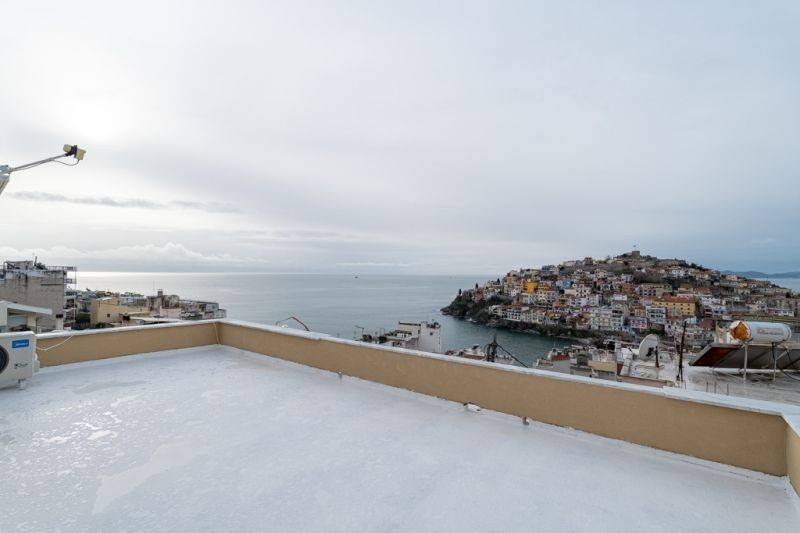 116 sq.m. apartment for sale in Souyolou, Kavala, on the 2nd floor of a well-maintained building. It is bright with a unique unobstructed view of the Panagia peninsula.