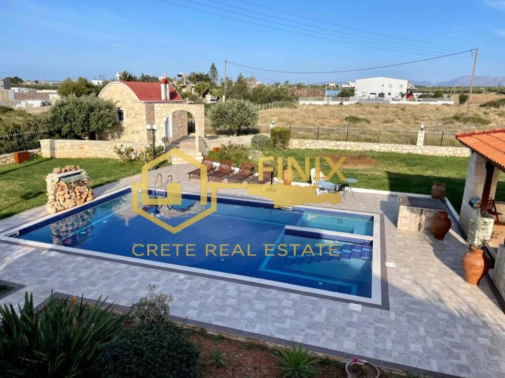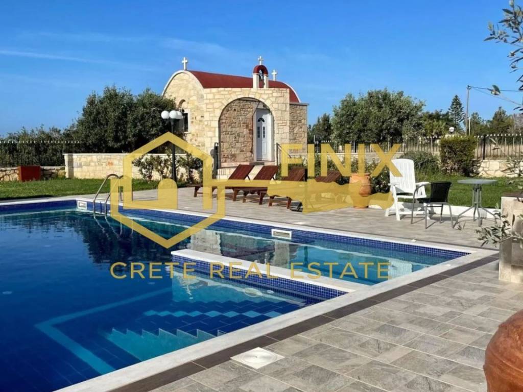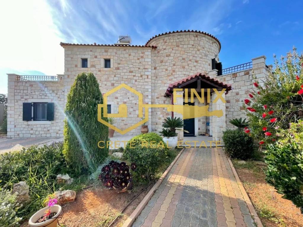 Exquisite Stone-Built Villa with Unique Design in Hersonissos This one-of-a-kind stone-built home offers Mediterranean charm and tranquility just minutes from Hersonissos. Surrounded by a lush garden with native plants, it features a large pool, a Mediterranean-style shower, and a spacious BBQ area with a pergola. Highlights include: • Large swimming pool (54 sqm) • Private small church in the garden • Unique round-shaped living room and master bedroom • Open-plan kitchen, dining, and living area • Verandas with sea and mountain views • Private parking for 3+ cars and a garage Perfect for those seeking peace, nature, and timeless Mediterranean style.