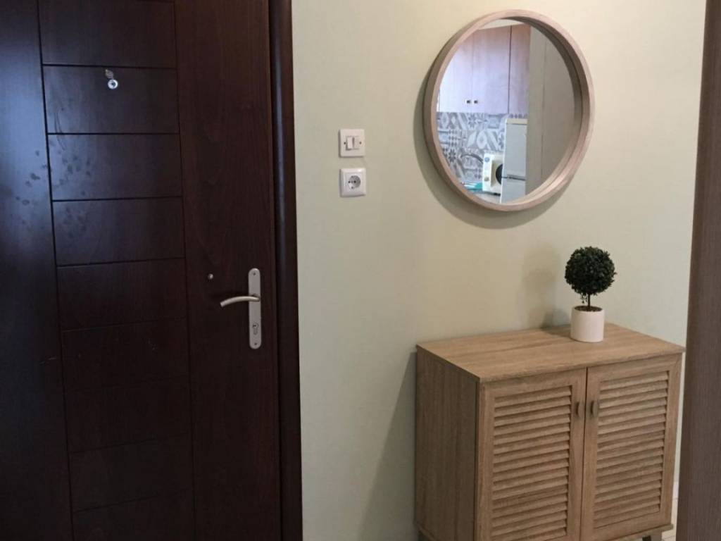 Γκαρσονιέρα 45τμ, αποτελείται από 3 χώρους, μια κουζίνα, ένα χωλ και ένα δωμάτιο. Είναι πλήρως επιπλωμένη με διπλό κρεββάτι, καναπέ και σύνθεση τηλεόρασης. Στο χώλ υπάρχει παπουτσοθήκη και ντουλάπα, στη κουζινα υπάρχει φουρνάκι και ψυγείο και στο μπάνιο πλυντήριο ρούχων. κοινόχρηστα 10ευρώ το μήνα..
