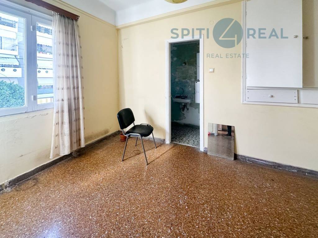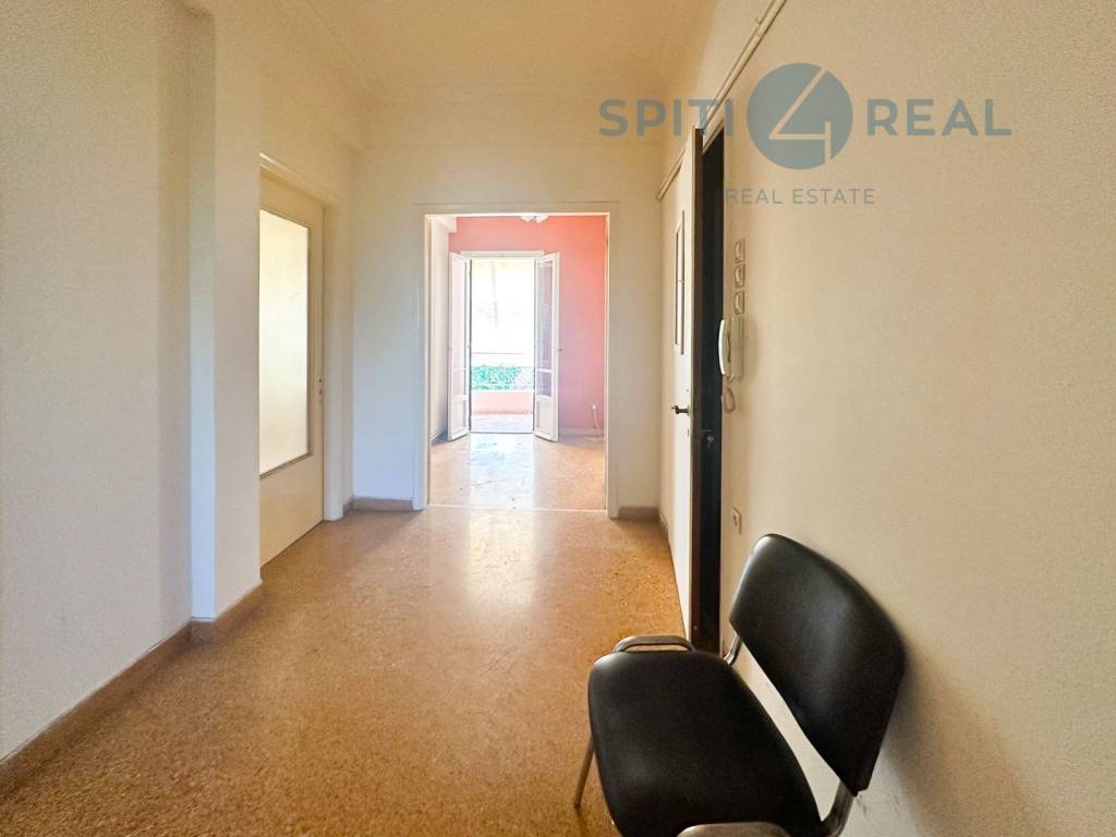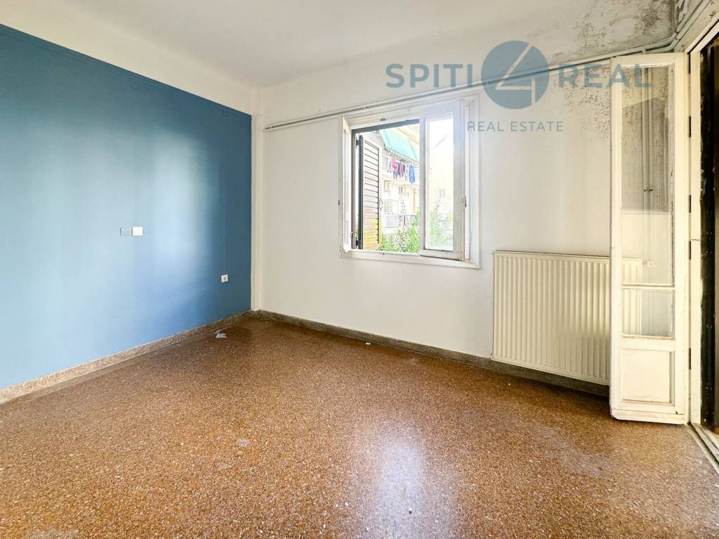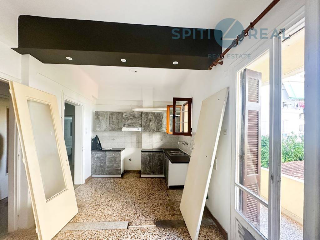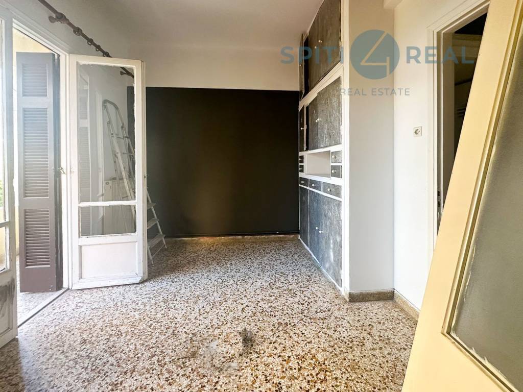 Near Davaki Square, a 122 sq.m. first-floor front-facing apartment, bright and in need of renovation, featuring a beautiful layout. It includes a living room, kitchen, 2 bedrooms, bathroom, WC, an internal storage space, and a balcony with awnings . The apartment is equipped with central oil heating and air conditioning. Without elevator. It boasts excellent specifications, offering spacious areas with a well-designed distribution. Located in the heart of Kallithea's central market, with easy access to public transportation. Real Estate Agency "Spiti4Real," property code (S1925).