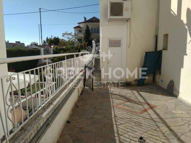 Panorama, Ikismos Makedonia - Villa 243sqm plot 730sqm, bedrooms 4, master bedroom, levels 4, ground floor (80sqm) - 1st - 2nd - 3rd, very good condition, year built 1995, energy class D, 2 living rooms, hall, 2 kitchens, 3 bathrooms, 3 wc, heating type: autonomous (natural gas), air condition, parking, quiet, dual aspect apartment, luminous, unobstructed view, frontage, storage space, fireplace, balconies, garden, aluminum frames, double glazed windows, door screen, secure door, luxurious, internal staircase, pets allowed, south-eastern orientation.