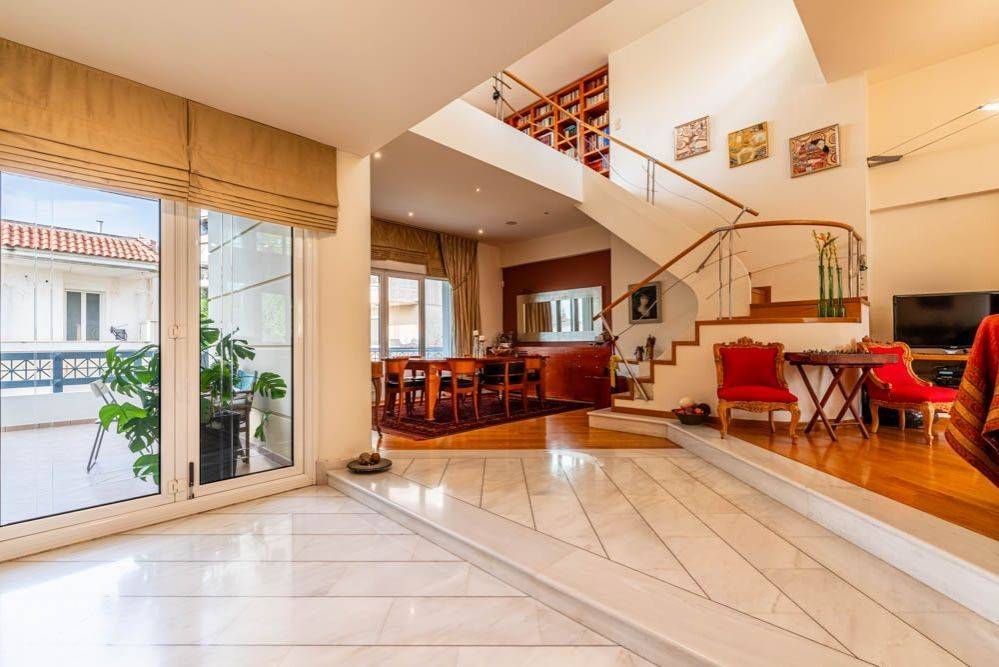 Built on a plot of 330 sqm. with a building permit issued in 1991 and completed in 1999-2000, this unique residence extends over 5 levels with a total surface area of 520 sqm, living space of 340 sqm and auxiliary space of 180 sqm. with wooden and marble floors extending throughout. It has an impressive living room, 3 master bedrooms on the 1st floor and 1 master bedroom on the ground floor, 3 WCs, 2 fireplaces, sauna, double glazed aluminium windows, security doors, alarm system, 180 sqm of utility rooms and built-in Hi Fi. All levels have autonomous heating powered by natural gas and Carrier air conditioning system, while it also has spacious terraces with nice sea views and internal parking for 2 cars. It also offers a beautiful garden on the ground floor and the house can be divided into 2 separate properties by the new owner. Location: Voula is a prime location on the Athens Riviera as it is very close to all amenities and just 30 minutes away from Athens’ historic city center. Unique features: Voula is a vibrant but peaceful and safe residential area that is home to trendy boutiques, wine bars, cafes, restaurants, a magnificent coastline and boasts a well-equipped public hospital. It has a lively commercial center with supermarkets, gyms, banks and is very close to international schools. Accessibility: Accessible by bus to the city center and to Glyfada, the closest commercial hub and just a 20-minute drive away from the Athens International Airport. It is a ten minute drive from the biggest new real estate development project in Hellinikon. Investment potential: Like most areas on the Athens Riviera, property prices here will always offer a good return on investment.