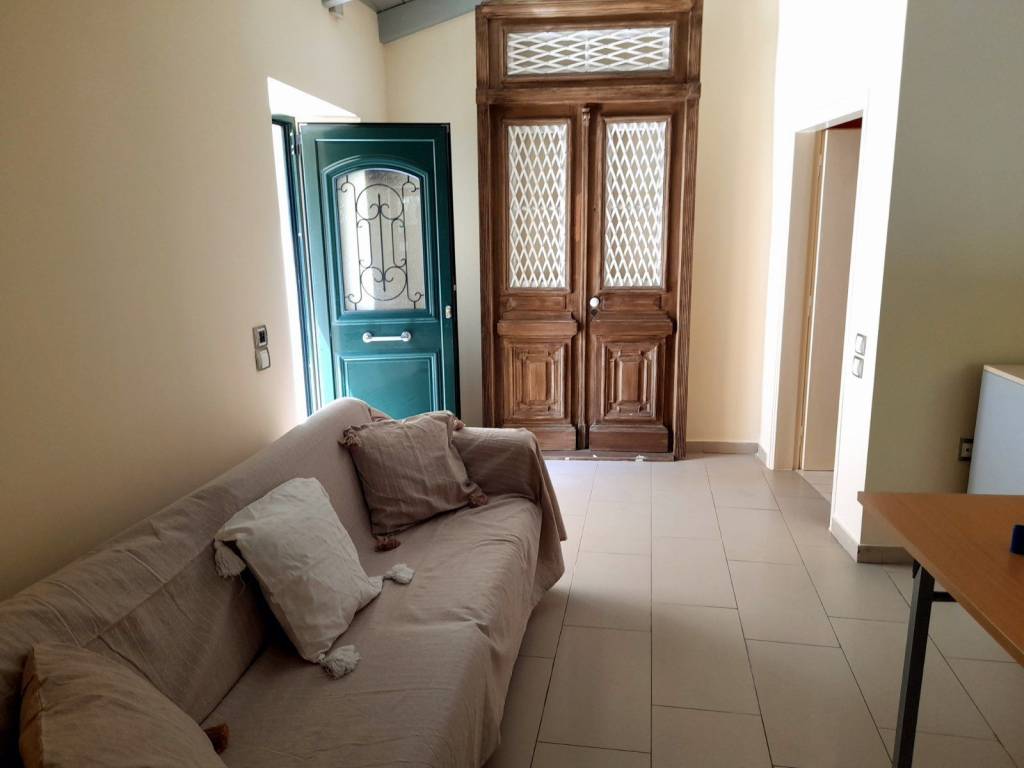 Renovated detached house for rent in Corfu, 50 sq m, 1 bedroom with double bed, living room, kitchen, bathroom, washing machine, screens, terrace. The detached house will be available from 01/05/2026 for permanent lease. During this time, work is being done. The bus stop is outside the house.