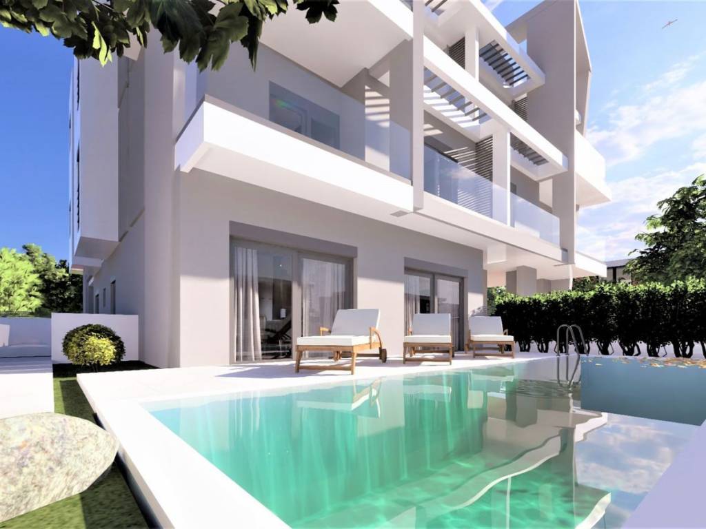 In the heart of Alimos, just 950 meters from the sea, a unique home awaits you, combining modern aesthetics, advanced technology, and absolute functionality. The brand-new G1 apartment, an impressive ground floor – basement maisonette, offers 154.7 sq.m. of comfort and high-standard construction. The design of the property focuses on open, bright spaces that embrace the natural beauty of the area. The wooden floors exude warmth, while in the bathrooms, carefully selected high-quality materials ensure elegance and timelessness. What truly sets this apartment apart is the stunning private garden of 100.9 sq.m. with its own 25.9 sq.m. pool. A space of absolute tranquility and relaxation, ideal for enjoying special moments with family and friends. The residence features an earthquake-resistant construction with an A+ energy rating, ensuring safety and maximum energy efficiency. The advanced VRV system guarantees ideal cooling and heating conditions all year round, while the alarm system and security door provide additional peace of mind. The apartment also includes a spacious storage room and a private parking space of 10.13 sq.m. in the pilotis, offering practicality and convenience for your daily life. This property is a rare opportunity for those seeking quality, comfort, and a prime location near the sea. Location: Located on the Athens Riviera, Alimos is an up-and-coming neighborhood to the south of Athens, just 7.7 km from the City Centre, close to the port of Piraeus. Unique features: A family-friendly seaside neighborhood that still retains its authenticity, Alimos boasts wide promenades on the seafront, easy access to beaches, cafes, restaurants and summer beach bars and clubs. Alimos is conducive for both families, buyers looking to have returns on their investment, and single households as it is close to schools, cultural centers (such as the Stavros Niarchos Foundation) and marinas for those into sailing. Accessibility: Ideally located midway between the city center and the coast. Easy access to trams, train stations, bus services and it is just a 15-minute drive to Piraeus Port, offering a quick getaway to the islands. Alimos is just a 45-minute drive away from the international airport. Investment potential: The neighborhood is poised to experience a strong rise in property prices due to its proximity to large urban projects such as the Hellinikon Project.