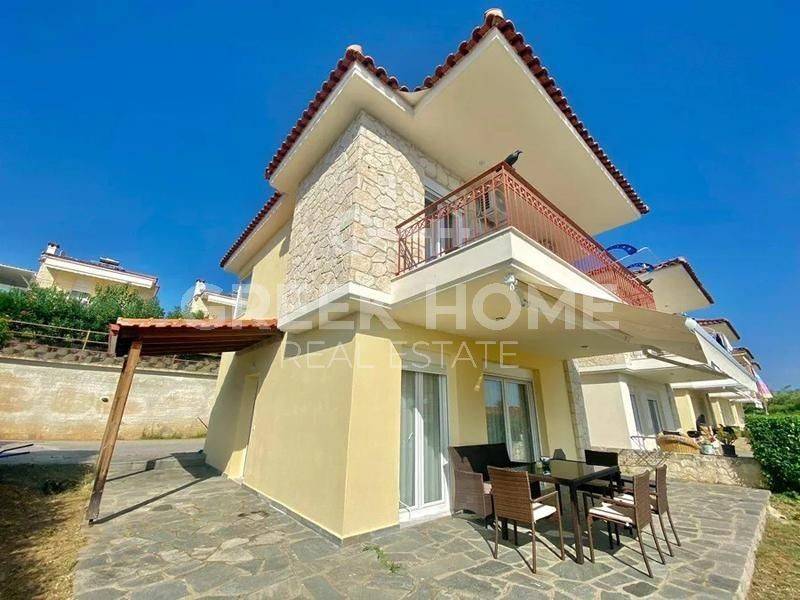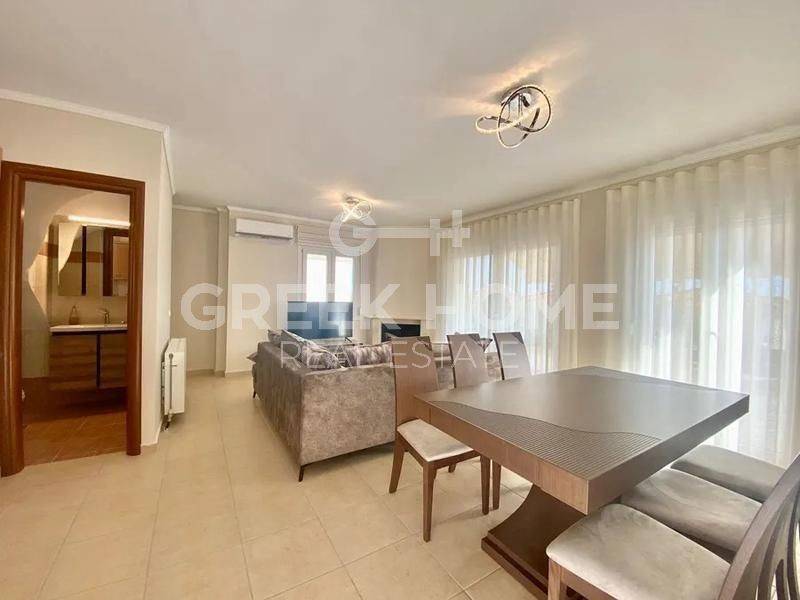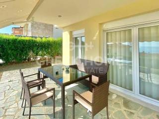 Pallini (Chalkidiki), Agia Paraskevi - Villa 110sqm plot 364sqm, fully furnished, bedrooms 3, levels 2, ground floor - 1st, fully renovated, energy class A+, living room, hall, kitchen, bathroom, 2 wc, heating type: autonomous (oil), air condition, parking, quiet, dual aspect apartment, sea view, frontage, storage space, solar heater, balconies, garden, built in appliances, thermal shut-off frames, double glazed windows, door screen, ceramic tiles floors, secure door, alarm, luxurious, internal staircase, pets allowed, close to sea (up to 500m).