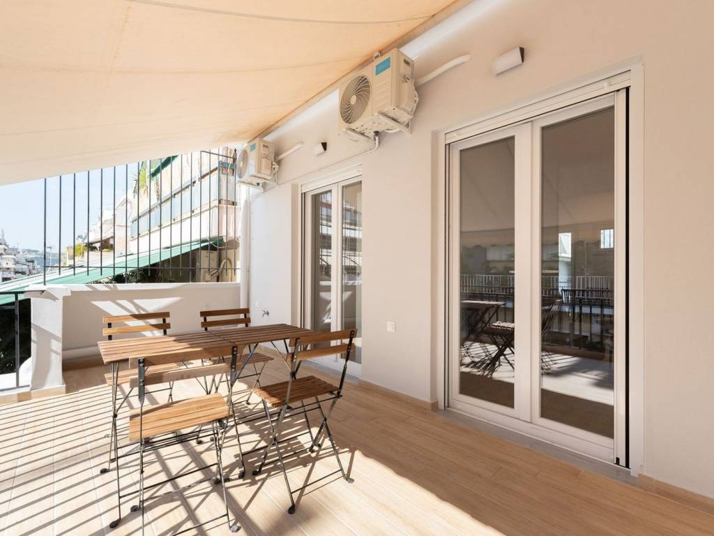 Penthouse of 42 sq.m., bright and airy, on the 3rd floor, part of a fully renovated building located in the Zografou area. The apartment features a spacious front outdoor area with a large veranda offering stunning views of Lycabettus Hill, as well as a smaller, quiet and charming back balcony with open views. It includes one bedroom, a living-room, a kitchen and a beautiful, comfortable bathroom. Fully furnished and equipped with modern electrical appliances, the building consists of fourteen small apartments of a similar type with functional layouts. Ideal for retirees, investors, or couples seeking comfort and tranquility, it offers an excellent location close to public transportation and universities. Zografou: Location and surroundings of the property The area of Zografou is located 3km from the center of Athens and next to the main avenues of Vas. Sofias, Katehaki and Kifissias with direct access to Attiki Odos to the Airport. Unique features The area is home to two major campuses: the Athens University Campus and the Polytechnical University (Polytechneion), so it is a very lively area but at the same time suitable for families. Cafes, restaurants, a large market along with quiet neighborhoods, the area gives all the options for an ideal urban life. Accessibility Extremely well connected to all arterial roads - Kifissias Avenue, Vouliagmenis Avenue and Mesogeion - making it a truly central point to connect to the rest of the city. The airport is 50 minutes to an hour away by metro and 30 minutes by car, while the city centre is 10 minutes away by car. There are regular bus services to the rest of Athens, as well as the Megaron Mousikis and Ambelokipi metro stations. The new metro line 4 is expected to serve the area with 4 new stations. Investment opportunities Being close to the historic city centre with 2 major campuses, the area is highly sought after not only by students, but also by families and investors. Airbnb rentals and residences are a safe investment prospect, with a guaranteed return on investment.