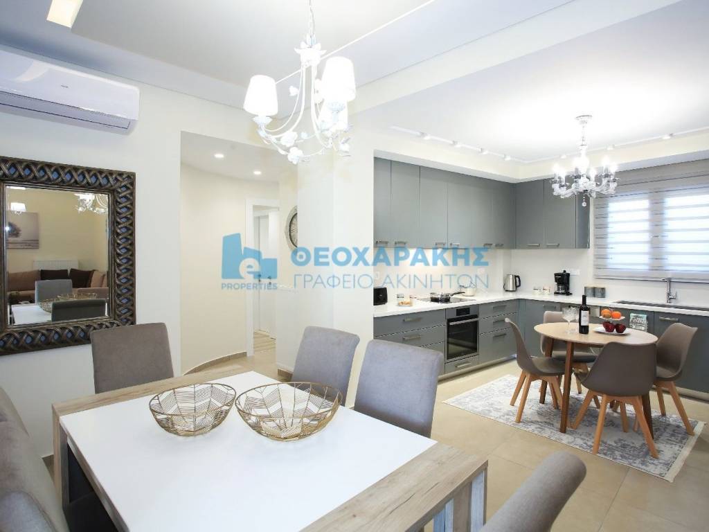 Gazi area. Fully furnished and electrically equipped, newly built apartment ( 2020), 125sqm with 3 bedrooms. This is a very carefully constructed appartment, with high energy class, which offers: - autonomous heating with exclusive boiler - solar water heater - air conditioning in all rooms - thermal facade - closed circuit television (cctv) - safety door - electric awnings - video intercom Pets are not accepted. Please check the video and the virtual tour. - Theocharakis Real Estate Agency - www.eproperties.gr All properties are AVAILABLE and the information listed is accurate. However, if you find any inaccuracies please let us know on our office phones or at info@eproperties.gr