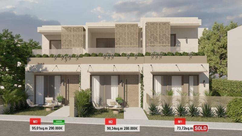 Ο οικισμός αποτελείται από 3 σύγχρονες μεζονέτες, σχεδιασμένες με προσοχή στη λεπτομέρεια και με γνώμονα την υψηλή αισθητική και την κομψότητα. Κάθε κατοικία αναπτύσσεται σε δύο επίπεδα, με φωτεινούς εσωτερικούς χώρους, λειτουργικά υπνοδωμάτια και μοντέρνους χώρους διαβίωσης που συνδυάζουν την πολυτέλεια με την αίσθηση οικειότητας. Επιπλέον, οι μπαλκονόπορτες επιτρέπουν την απρόσκοπτη θέα προς τη θάλασσα, δημιουργώντας ένα περιβάλλον ηρεμίας και χαλάρωσης.