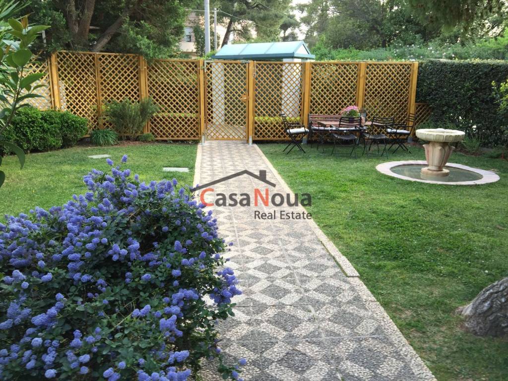 ΕΚΑΛΗ μεζονέτα 550 τ.μ., ισόγεια, κατασκευή 2003, με κήπο . Επιβλητικοί χώροι υποδοχής με άμεση πρόσβαση στον κήπο, τζάκι, ανεξάρτητη μεγάλη κουζίνα με χώρο τραπεζαρίας και ηλεκτρικές συσκευές, wc, 5 υ/δ μεγάλα (2 master), 3 μπάνια μεγάλο playroom με καθιστικό και τζάκι, ξενώνας με μπάνιο, αποθηκευτικοί χώροι, 2 θέσεις υπόγειο παρκινγκ και εσωτερικό ασανσέρ.