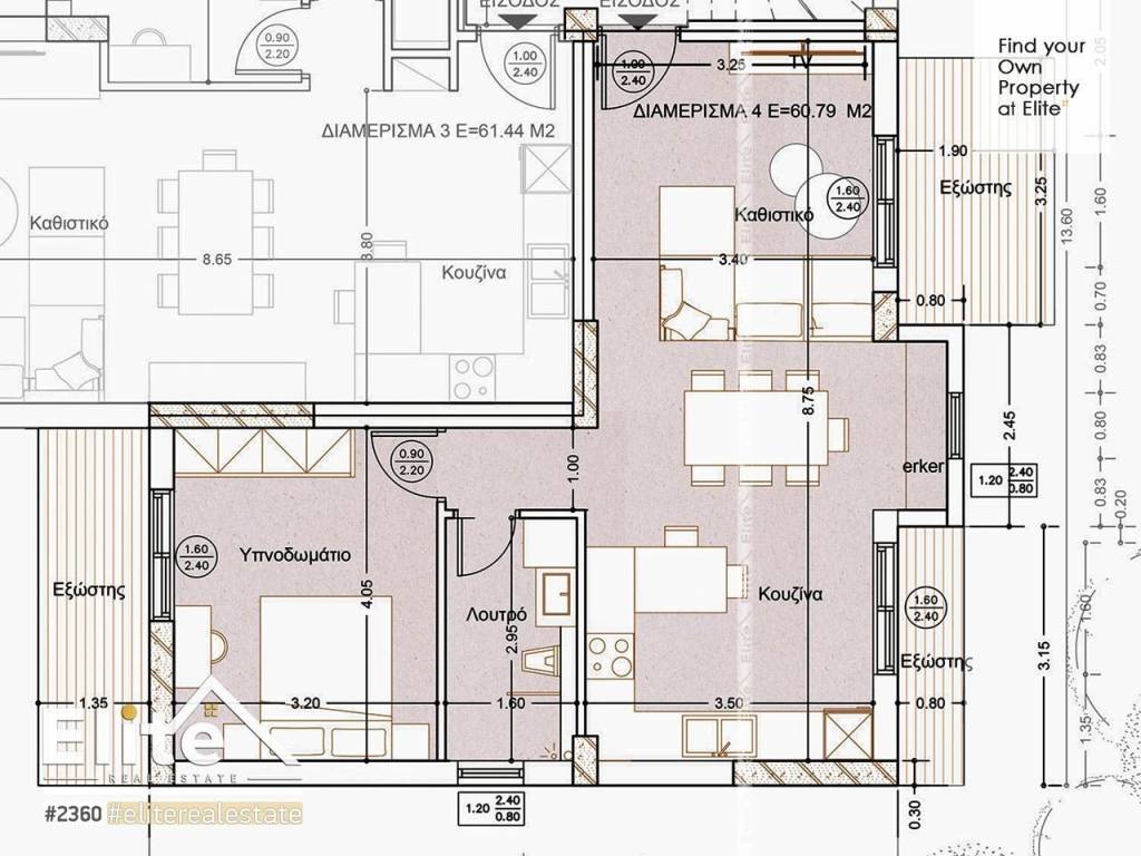Διαμέρισμα 1 Υπνοδωματίου – 60,79 τ.μ. | 1ος ID: 182.2360.A4 Διατίθεται πολυτελές και λειτουργικό διαμέρισμα στον 1ο όροφο (Α4), συνολικής επιφάνειας 60,79 τ.μ.. Περιλαμβάνει ένα υπνοδωμάτιο και λουτρό, ιδανικό για ιδιοκατοίκηση ή επένδυση. Το καθιστικό και η κουζίνα οδηγούν σε ευρύχωρο ανατολικό εξώστη, προσφέροντας άπλετο φυσικό φως κατά τις πρωινές ώρες, ενώ το υπνοδωμάτιο διαθέτει ιδιωτικό δυτικό εξώστη, ιδανικό για στιγμές χαλάρωσης το απόγευμα. Σε προνομιακή τοποθεσία, σε γωνιακό οικόπεδο δίπλα στο Λιμάνι Καλαμάτας και στο Πάρκο Σιδηροδρόμων, ανεγείρεται τετραώροφη οικοδομή υψηλής αισθητικής, ενεργειακής κλάσης Α+, με διαμερίσματα διαθέσιμα προς πώληση. Το έργο έχει αδειοδοτηθεί, με προβλεπόμενη ημερομηνία παράδοσης τον Ιούνιο του 2027. Το πολυτελές, νεόδμητο κτίριο θα περιλαμβάνει διαμερίσματα ενός, δύο και τριών υπνοδωματίων, σχεδιασμένα με έμφαση στη λειτουργικότητα και την άνεση. Στο ισόγειο προβλέπεται πυλωτή με διαθέσιμες θέσεις στάθμευσης, ενώ στο υπόγειο θα υπάρχουν ιδιωτικές αποθήκες για κάθε διαμέρισμα 11 έως 23 τ.μ! Εμβαδόν οικοπέδου: 588 τ.μ. - Εμβαδόν κτιρίου: 1.184 τ.μ. - Όροφοι: 4 - Πυλωτή: Ναι - Υπόγειο: Ναι Χτισμένα σε ήσυχη τοποθεσία, μακριά από τον θόρυβο της πόλης και την κίνηση των αυτοκινήτων, τα διαμερίσματα προσφέρουν ιδανικό περιβάλλον για χαλάρωση και ποιοτική διαβίωση. Το κτίριο θα αποτελείται από ανεξάρτητα διαμερίσματα, κατασκευασμένα με εξωτερική θερμομόνωση πάχους 7εκ., που εξασφαλίζει υψηλή ενεργειακή απόδοση και θερμική άνεση καθ’ όλη τη διάρκεια του έτους. Η πολυτέλεια και η άνεση είναι εμφανείς σε κάθε χώρο του ακινήτου, ενώ η αυτονομία ψύξης και θέρμανσης εξασφαλίζεται μέσω αντλίας θερμότητας υψηλής ενεργειακής απόδοσης, προσφέροντας εξοικονόμηση ενέργειας και απόλυτη θερμική ισορροπία καθ’ όλη τη διάρκεια του χρόνου. Για κάθε διαμέρισμα προβλέπονται διαθέσιμες θέσεις στάθμευσης στην πυλωτή, καθώς και ιδιωτικοί αποθηκευτικοί χώροι στο υπόγειο, καλύπτοντας πλήρως τις ανάγκες οργάνωσης και πρακτικότητας των κατοίκων. Αυτόνομη Θέρμανση, Θερμομόνωση, Parking & Premium Παροχές Για όλα τα διαμερίσματα έχει προβλεφθεί θέση στάθμευσης στην πυλωτή καθώς και ιδιωτικός αποθηκευτικός χώρος στο υπόγειο, επιφάνειας 11 έως 23 τ.μ., με άμεση πρόσβαση μέσω ανελκυστήρα. Η θέρμανση και ψύξη είναι αυτόνομη, μέσω αντλίας θερμότητας υψηλής ενεργειακής απόδοσης, ενώ το κτίριο διαθέτει εξωτερική θερμομόνωση πάχους 7 εκ., συμβάλλοντας σε βέλτιστη θερμοκρασιακή απόδοση και εξοικονόμηση ενέργειας. Το κτίριο είναι αυτόνομο, δεν εφάπτεται με άλλα, προσφέροντας μεγαλύτερη ιδιωτικότητα και φυσικό φωτισμό. Τα υλικά κατασκευής είναι άριστης ποιότητας, ο σχεδιασμός μοντέρνος και λειτουργικός, ενώ έχουν προβλεφθεί: Σύστημα συναγερμού για κάθε διαμέρισμα | Φωτοβολταϊκό σύστημα για την υποστήριξη των κοινόχρηστων | Ενεργειακό τζάκι κλειστού τύπου σε διαμερίσματα. *Η τοποθεσία στο χάρτη είναι ενδεικτική και όχι η ακριβή τοποθεσία του ακινήτου. /// Μπορείτε να δείτε αναλυτική παρουσίαση στο > https:// greek.is/ 2360 Περισσότερα ακίνητα στο > https:// www. eliterealestate. gr --- Η ELITE Real Estate - Μεσιτικό γραφείο στην Καλαμάτα με συνεχή καριέρα στο τομέα της #Real Estate ως ένα από το πιο δυναμικά γραφεία για συμβουλευτικές υπηρεσίες ακινήτων στην Μεσσηνία, βρίσκεται σε κεντρικό σημείο της πόλης στη διεύθυνση Αμβροσίου Φραντζή 6, στην Καλαμάτα. --- ΔΙΑΘΕΣΙΜΟ ΑΠΟ: ELITE REAL ESTATE Σύμβουλοι ακ