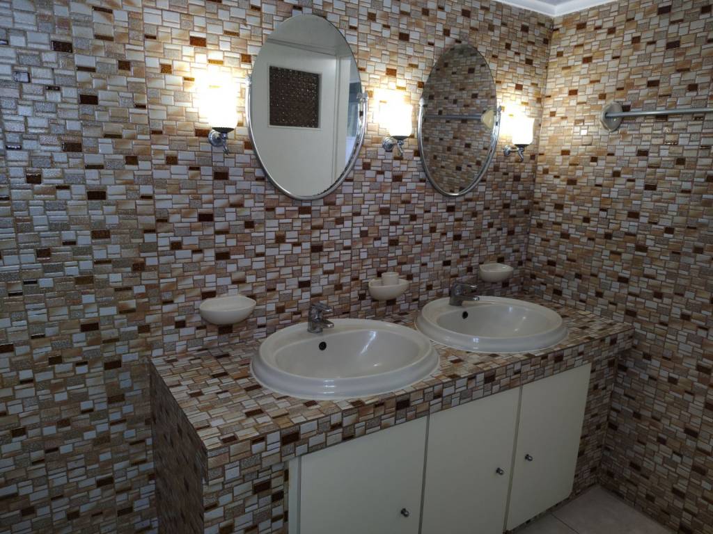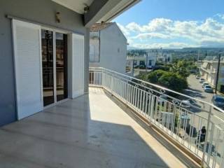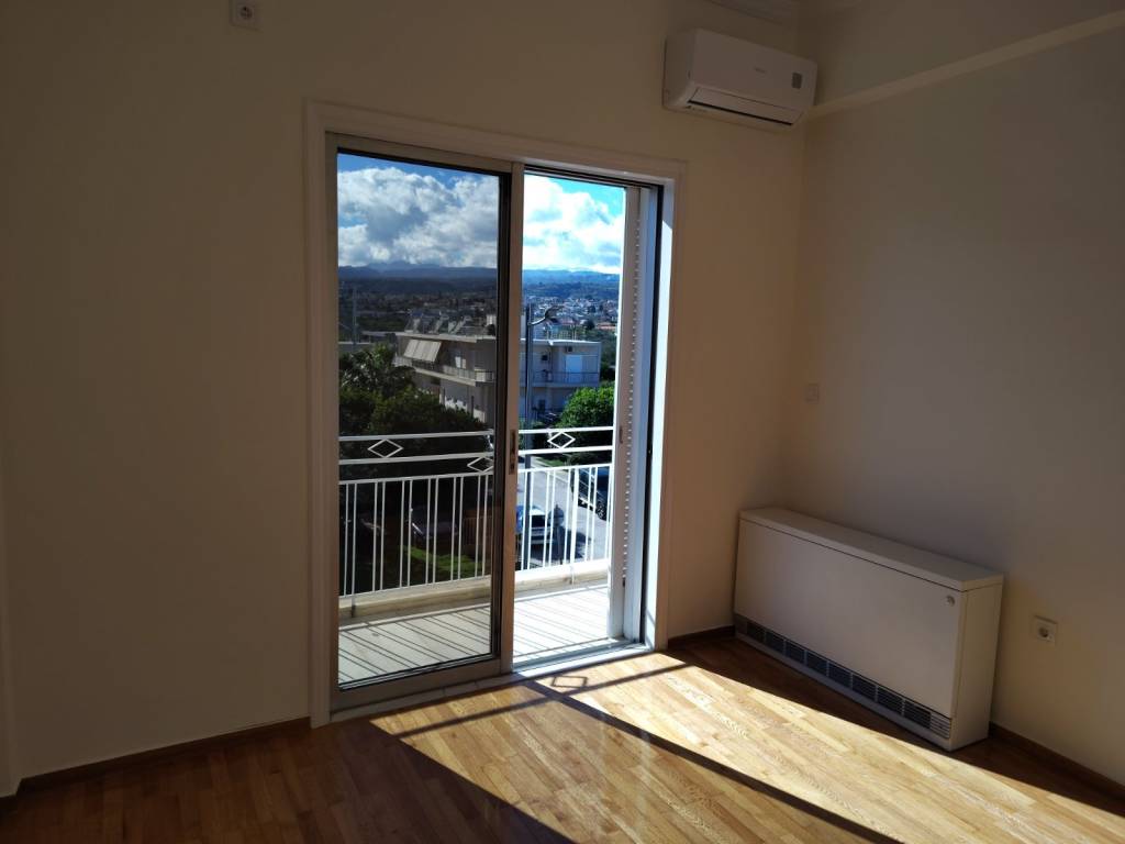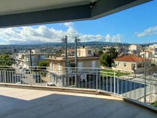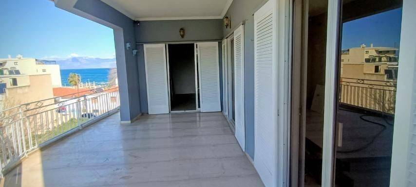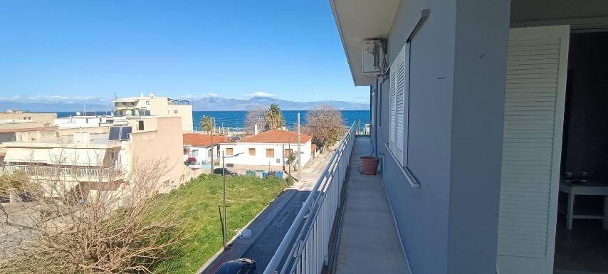 Διατίθεται προς μίσθωση όμορφο και φωτεινό διαμέρισμα 100 τ.μ., δευτέρου (και τελευταίου) ορόφου. Αποτελείται από τρία άνετα υπνοδωμάτια με μεγάλες εντοιχισμένες ντουλάπες, άνετη κουζίνα, σαλόνι-καθιστικό, διάδρομο, ένα μεγάλο μπάνιο και ένα WC. Τα υπνοδωμάτια έχουν δρύινα πατώματα, ενώ οι λοιποί χώροι μάρμαρα. Το διαμέρισμα διαθέτει βεράντες περιμετρικά με εξαίρεση την ανατολική πλευρά του, με το δυτικό μπαλκόνι να είναι ιδιαίτερα μεγάλων διαστάσεων και να μπορεί να λειτουργήσει ως σαλόνι εξωτερικού χώρου. Προσφέρει απρόσκοπτη θέα περιμετρικά τόσο προς το βουνό όσο και προς την παραλία και τη θάλασσα, από την οποία απέχει περίπου 100 μέτρα. Για θέρμανση και ψύξη διαθέτει ενεργειακό τζάκι στο καθιστικό, το οποίο θερμαίνει και το ένα από τα υπνοδωμάτια, θερμοσυσσωρευτές σε όλους τους κύριους χώρους και τρία κλιματιστικά (ένα στο καθιστικό - σαλόνι και από ένα σε δύο από τα τρία υπνοδωμάτια). Υπάρχει επίσης ηλιακός θερμοσίφωνας και το διαμέρισμα διαθέτει πόρτα ασφαλείας. Η οικοδομή δεν διαθέτει ανελκυστήρα και τα κοινόχρηστα είναι ελάχιστα.